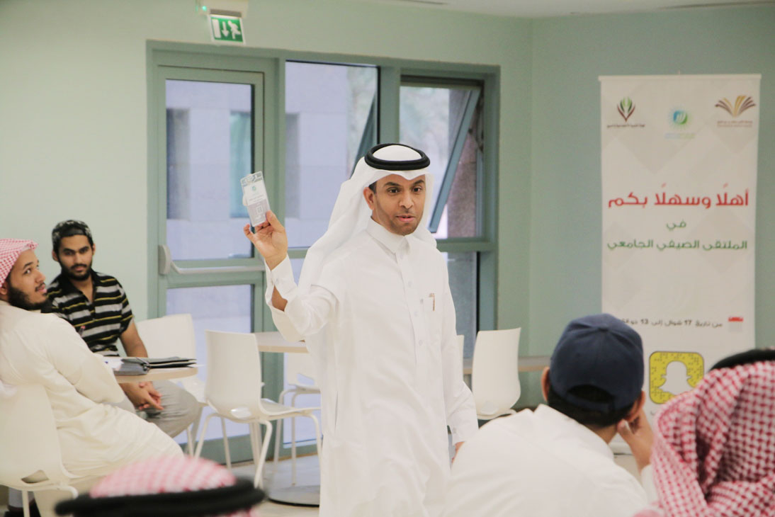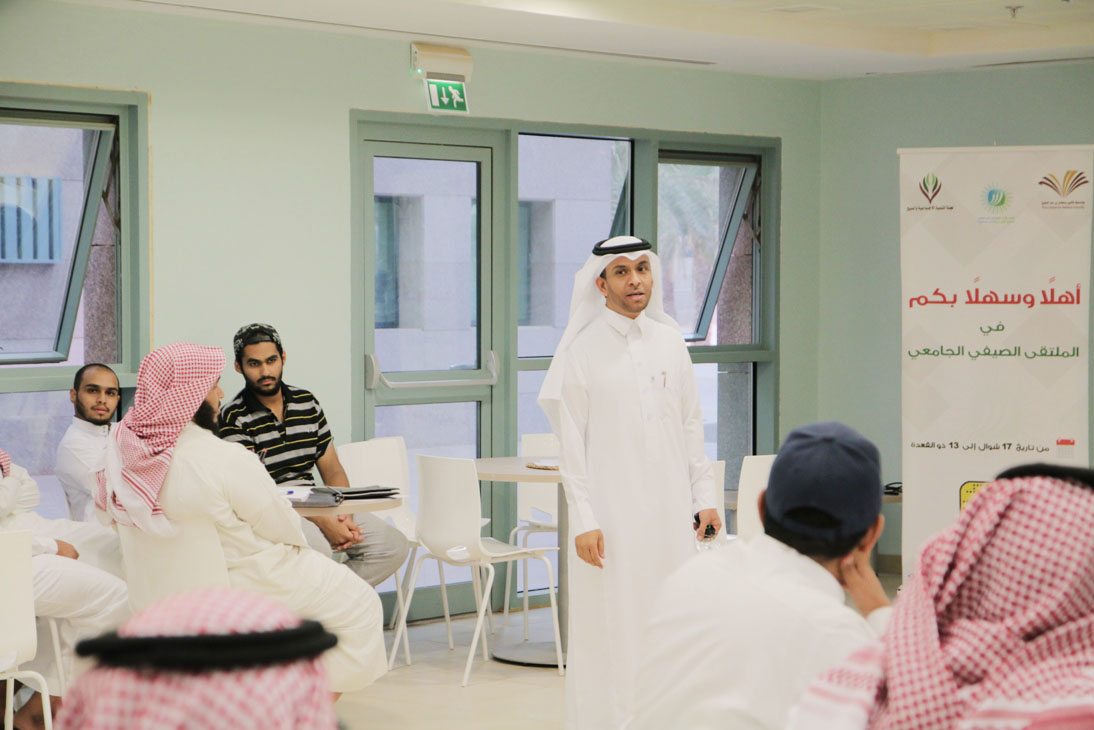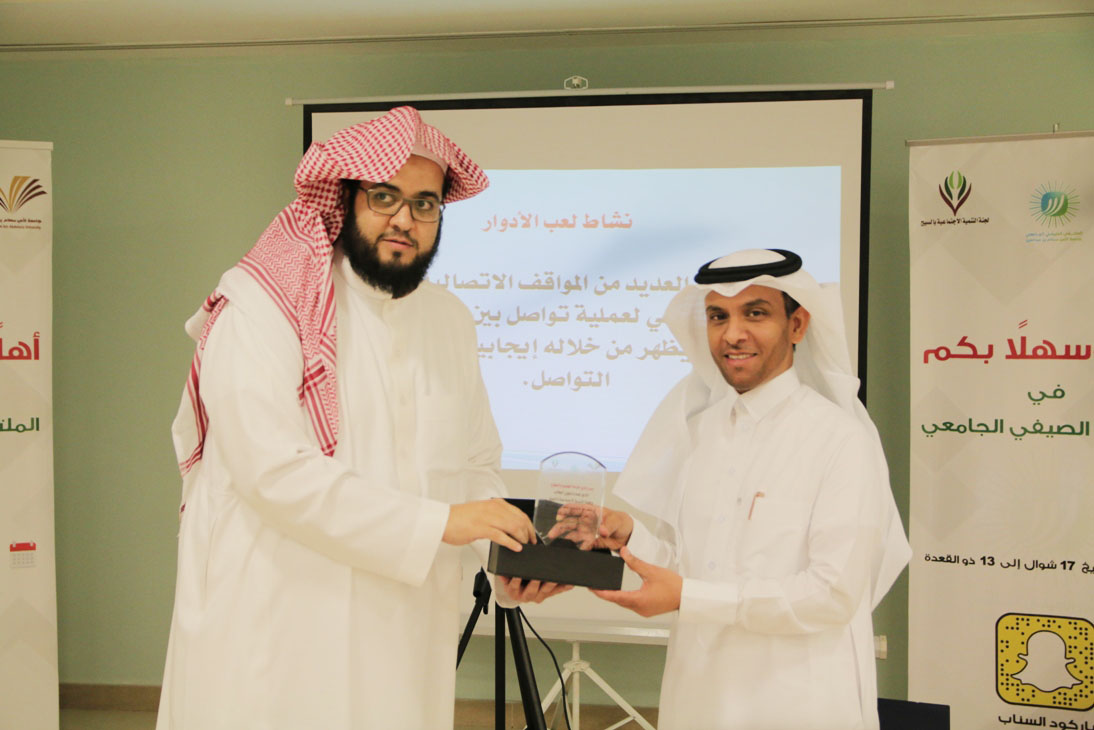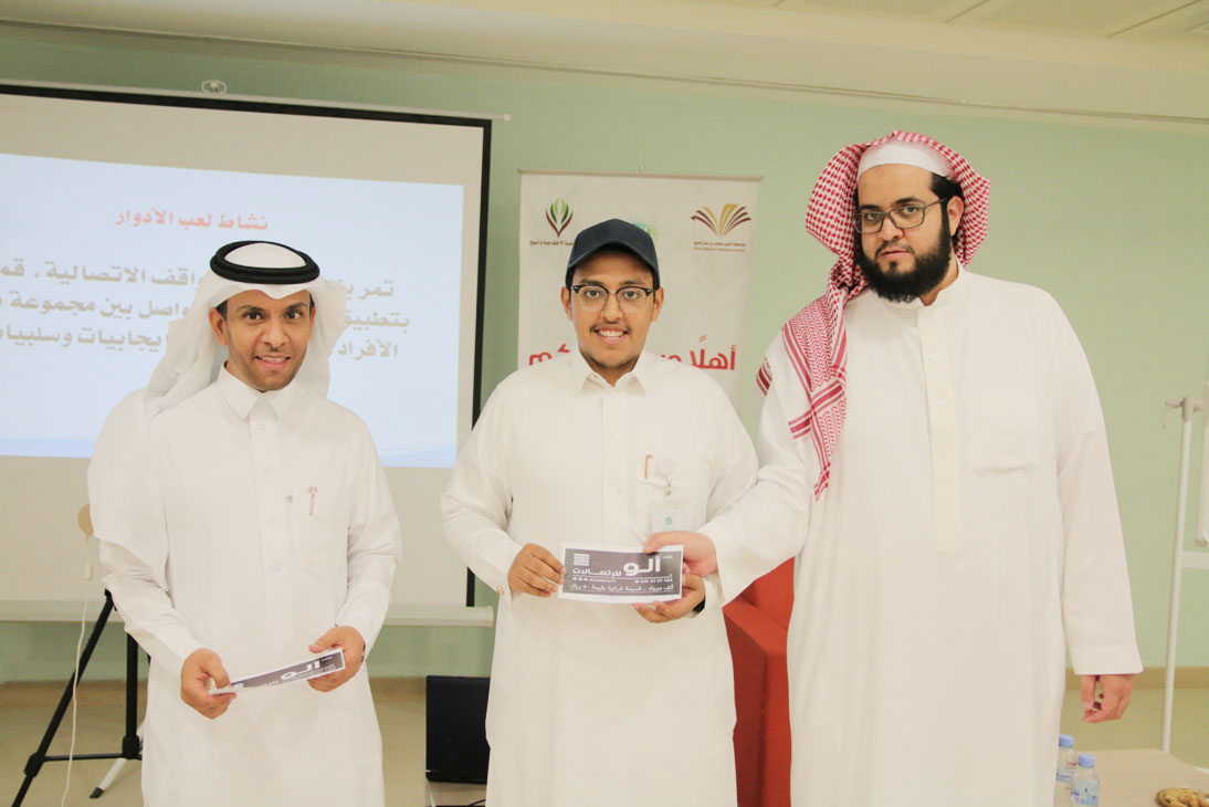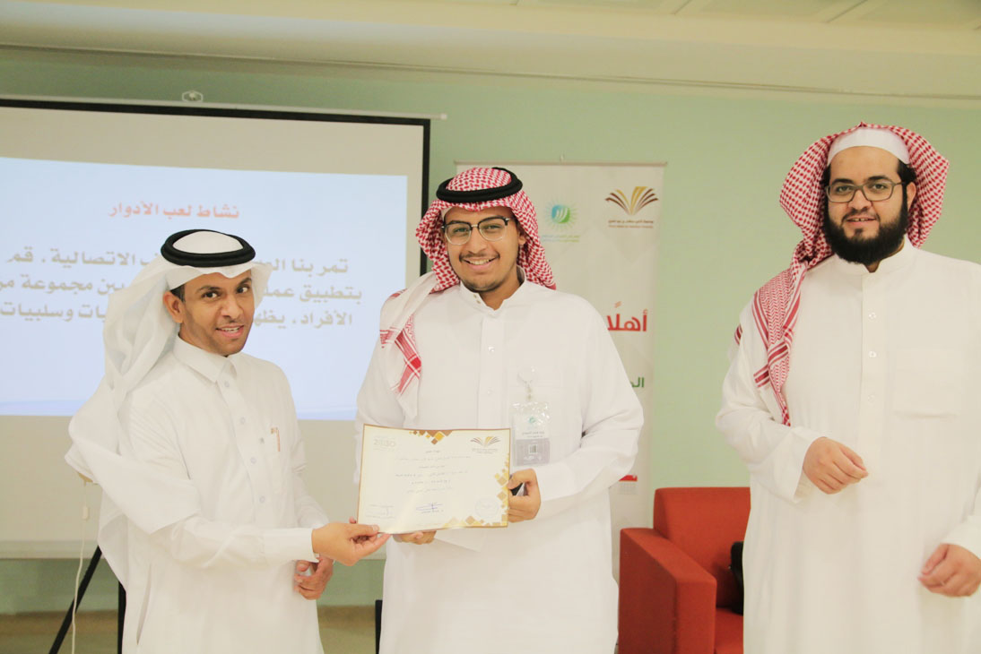 ضمن البرامج التي تنفذها لجنة مسار المهارات والتطوير بالملتقى الصيفي في جامعة الأمير سطام بن عبدالعزيز قدم الدكتور عبدالله الخرعان مساء أمس الأحد دورة تدريبية بعنوان "التواصل الذكي" , تم خلالها التعريف بالاتصال من حيث أهدافه وأنماطه وأنواعه وماهيته , وكيفية أسهامه في تجاوز عقبات الحياة , كما عرض المدرب خلال الدورة بعض النماذج العملية للاتصال الذكي, وأستعرض أيضاً الأنماط الشخصية في الحياة وكيفية التعامل والتواصل المناسب معها , حيث استمرت الدورة لمدة أربعة ساعات تخللها بعض الأنشطة الجماعية , كما كرم في ختامها الطلاب المتفاعلين وسلمت الشهادات للحضور.