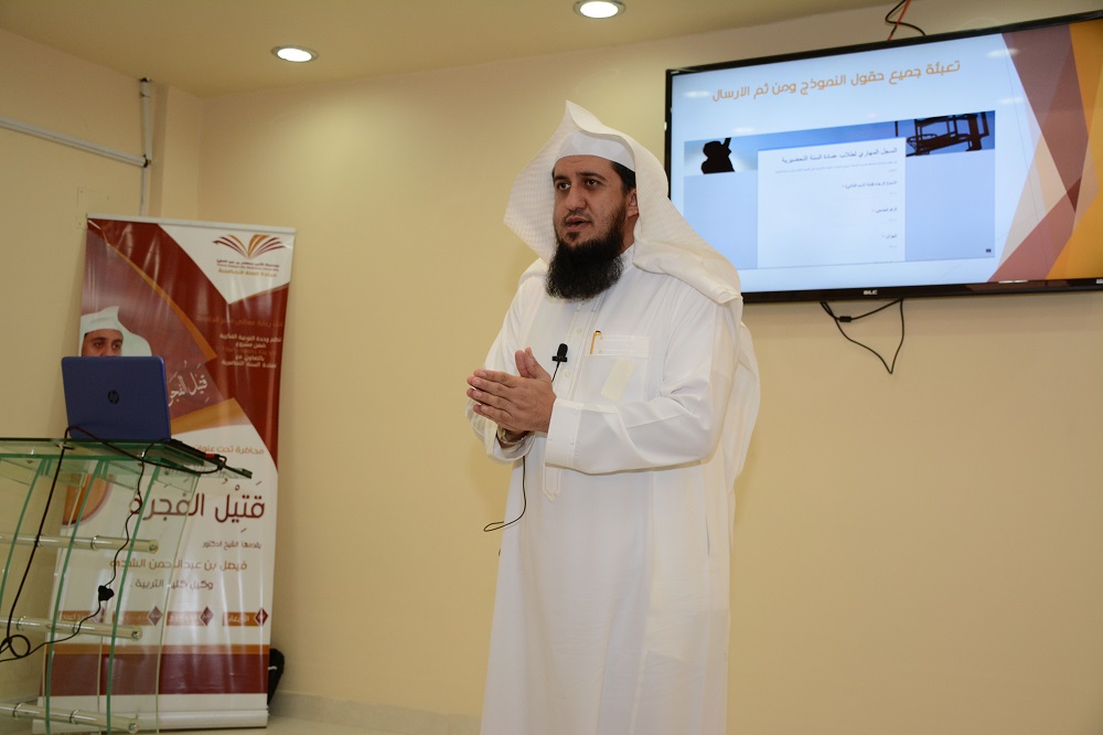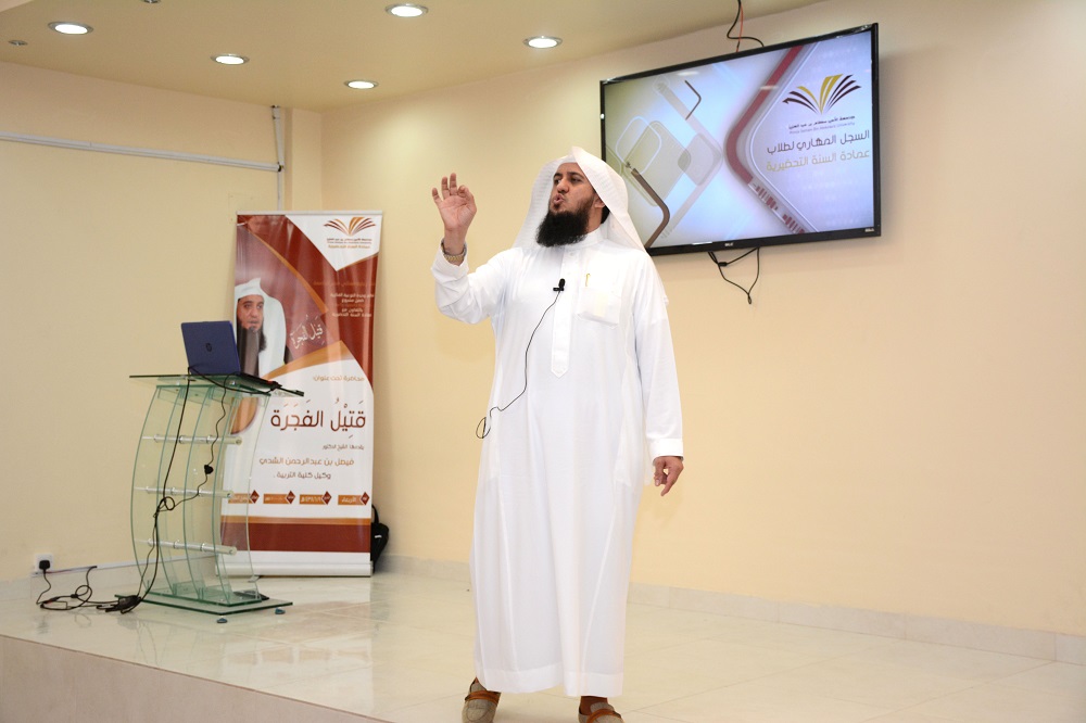أقيمت بعمادة السنة التحضيرية محاضرة بعنوان: ( قَتِيلُ الفَجَرَة ِ) وذلك يوم الأربعاء الموافق 16 / 6/ 1438هـ قدمها فضيلة الشيخ الدكتور: فيصل بن عبد الرحمن الشدي عضو هيئة التدريس بالجامعة ووكيل كلية التربية ، وتأتي هذه الفعالية ضمن فعاليات (مشروع نحو جامعة واعية1 ) الذي تنظمه وحدة التوعية الفكرية بالجامعة ،وفي التفاصيل بدأت المحاضرة بقصة نعتها بالحزينة جذبت إنتباه الحضور وشدت مسامعهم ، عاشوا من خلالها أحداث مَقْتَلة الحُزن التي تحاكي بدايات الفتن السياسية في الدولة الإسلامية وما قادت إليه ، معززا قصته برسائل توعوية كالوقوف بحزم ضد كل محاولات زرع الفتن الطائفية بين أبناء مجتمعنا ، وعدم التساهل مع كل أشكال إذكاء روح الانقسام المذهبي في وطننا ، وضرورة تعميق وعينا بمخاطر هذه الفتن، والتثبت من مصادرها وعدم تبني المعتقدات والاتجاهات دون الاستماع إلى الطرف الأخر ، وفي الختام تقدم فضيلة الشيخ فيصل بن عبد الرحمن الشدي بشكره لعمادة السنة التحضيرية ممثلة بعميدها الدكتور مشاري بن عياد العصيمي على جهودهم المبذوله في نصح وأرشاد الطلاب فيما ينفعهم لخدمة دينة ووطنهم ، بعد ذلك تفضل الأستاذ محمد بن شايع المطرفي بتقديم درعًا تذكاريًّا باسم العمادة لضيف اللقاء .