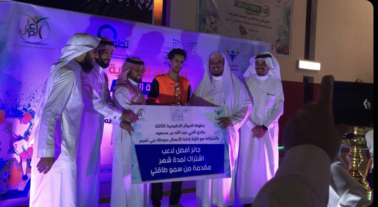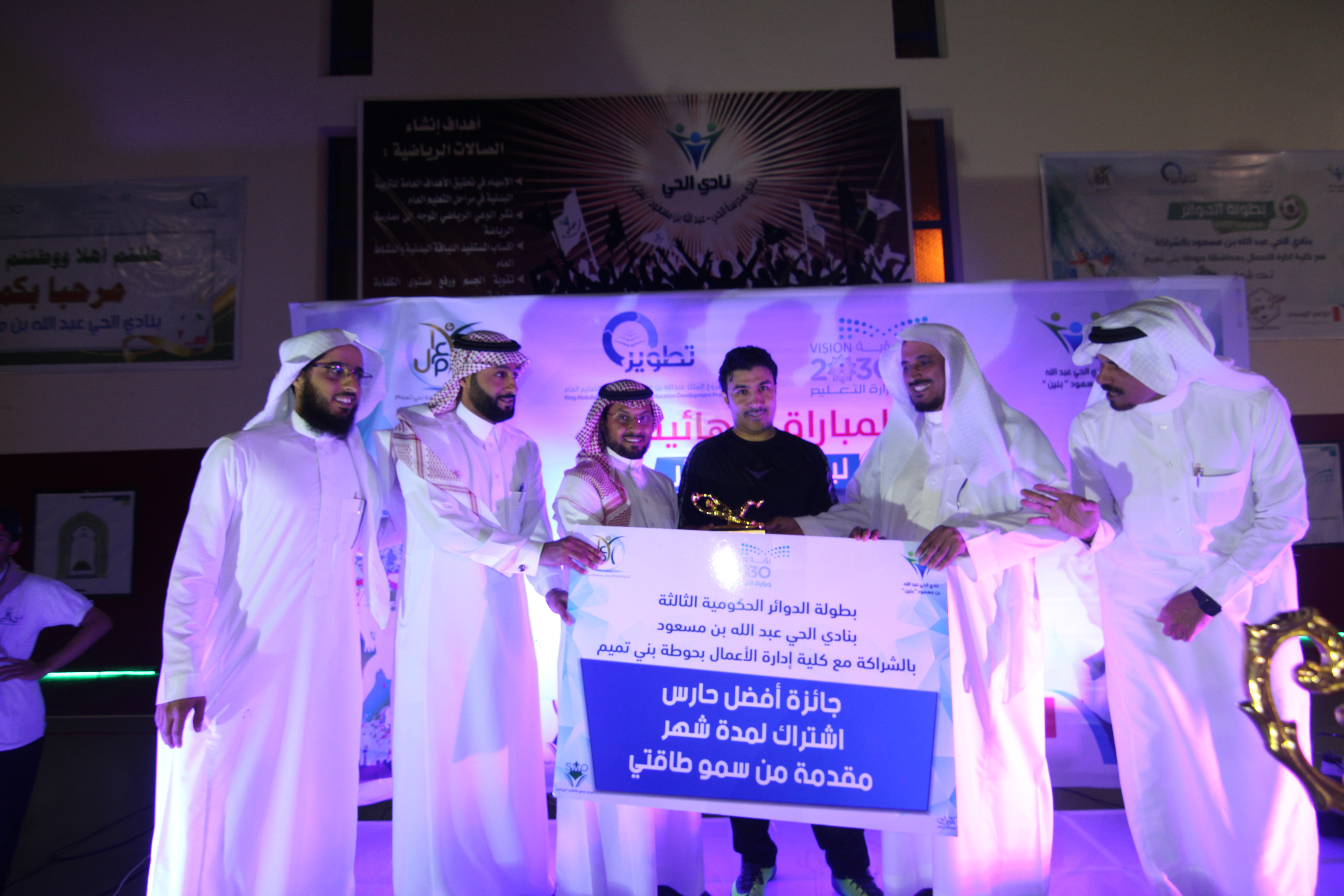تحت رعاية عميد كلية إدارة الأعمال في حوطة بني تميم د. خالد بن عبدالله العتيبي، ومدير التعليم بمحافظتي حوطة بني تميم والحريق أ. سعود بن ناصر العثمان أقيمت المباراة النهائية، من بطولة أبطال الحد الجنوبي لكرة القدم، التي نظّمتها الكلية بالتعاون مع نادي الحي عبدالله بن مسعود بين الدوائر الحكومية، وذلك في مساء يوم الاثنين ١٤٣٩/٧/٩هـ، في ملعب نادي الحي.