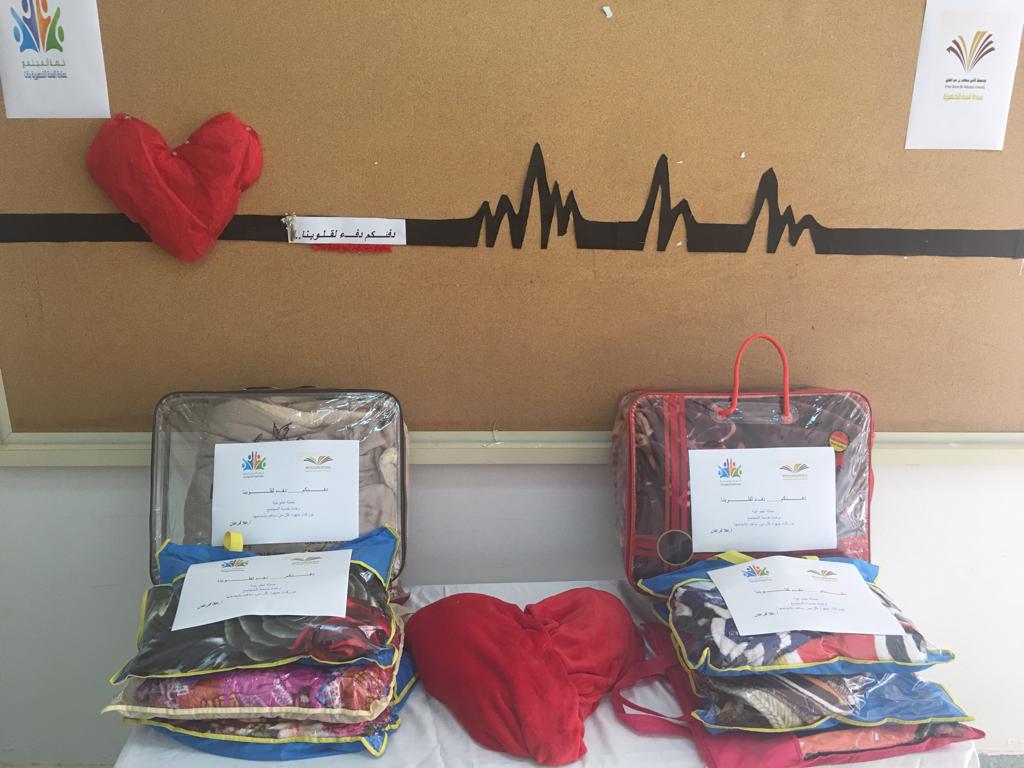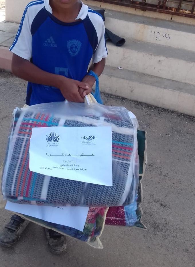 ولأن التكافل الاجتماعي ووحدة المجتمع بجميع فئاته من أهم أهداف المجتمعات المتقدمة وأساسا ضروريًا لرفعتها وتقدمها أطلقت وحدة خدمة المجتمع بإشراف أ/علا قرعان ولجنة صديقات المجتمع في عمادة السنة التحضيرية للطالبات يوم الأثنين الموافق 1440/3/4هـ حملة "دفئكم.. ..دفء لقلوبنا" تتضمن جمع أعداد من البطانيات الشتوية وتوزيعها على الفئات المستحقه من المجتمع المحلي كعمال النظافه والأسر العفيفة والخالات والعمالة المتدنية الدخل وتخصيص مجموعة للاطفال الأيتام.حيث ساهمت جميع منسوبات وطالبات وموظفات العمادة بإنجاح الحملة وتيسير أمورها.وقد عكست عمق المشاعر الإنسانية والمحبه المتبادلة.