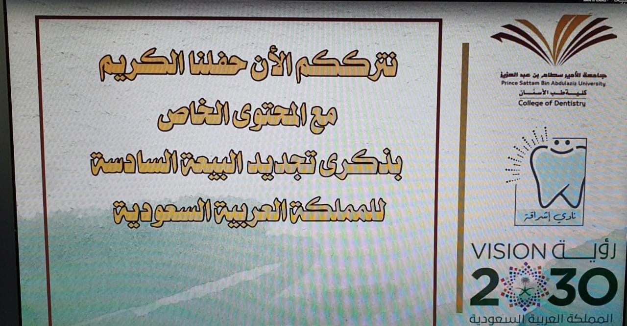 تحت رعاية كريمة من سعادة عميد كلية طب الأسنان الدكتور/عبد الوهاب بن علي أبو درمان أقيم أحتفال ذكرى تجدد البيعة السادسة لخادم الحرمين الشريفين