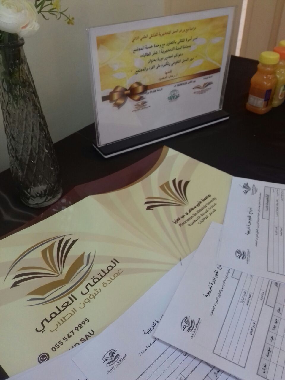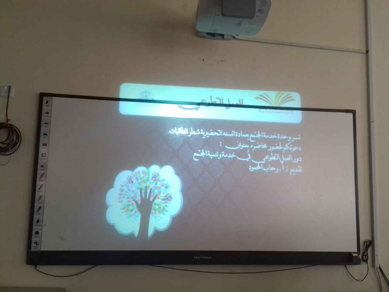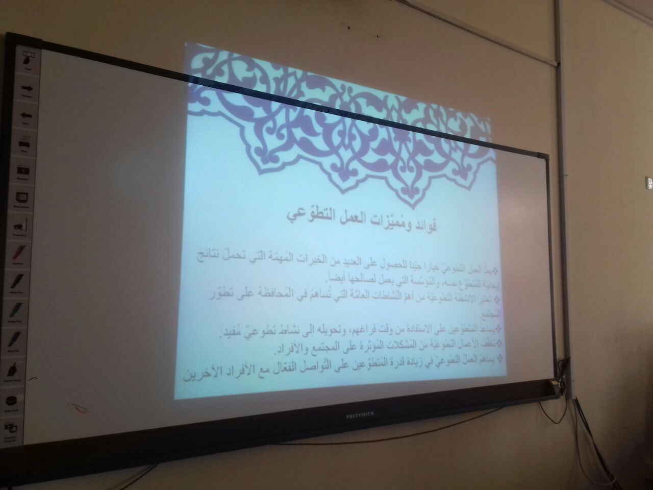 نظمت أسرة الملتقى العلمي دورة لمحور الأعمال التطوعية والخدمة المجتمعية بعنوان " دور العمل التطوعي وتأثيره على الفرد والمجتمع " للأستاذة رحاب المحمود يوم الأثنين الموافق 24/3/1439