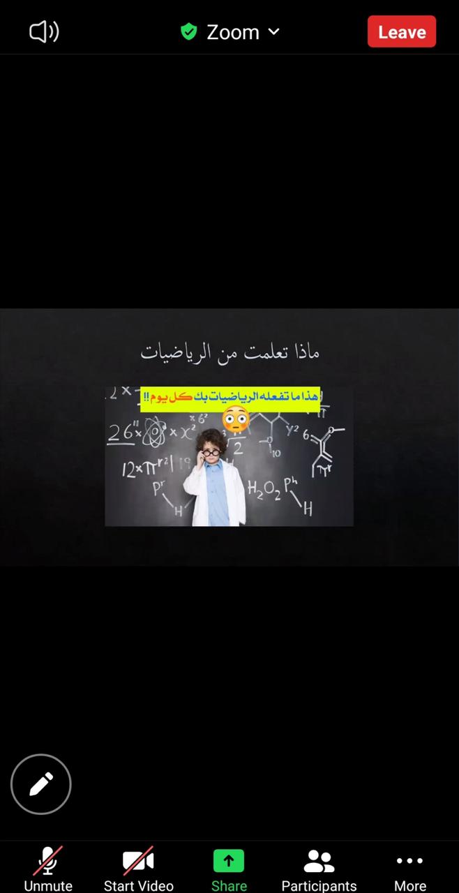 أقام المجلس الطلابي لقسم الرياضيات بكلية العلوم والدراسات الإنسانية بالخرج (أقسام الطالبات) ورشة عمل بعنوان ( دور الرياضيات في حياتنا ) قدمتها الطالبتين / عائشة هزازي و فتون الغامدي بإشراف الأستاذة سارة العساف وذلك يوم الأربعاء الموافق 25/3/1442هـ عبر جلسة افتراضية على برنامج الزوم و ذلك في تمام الساعة 8 مساءًا.