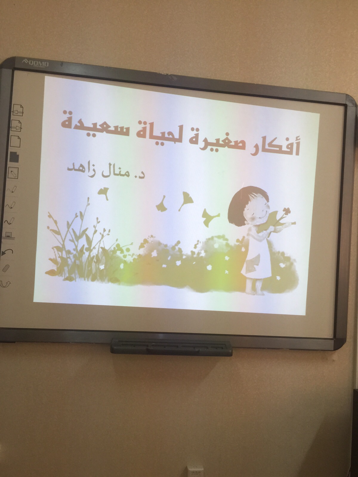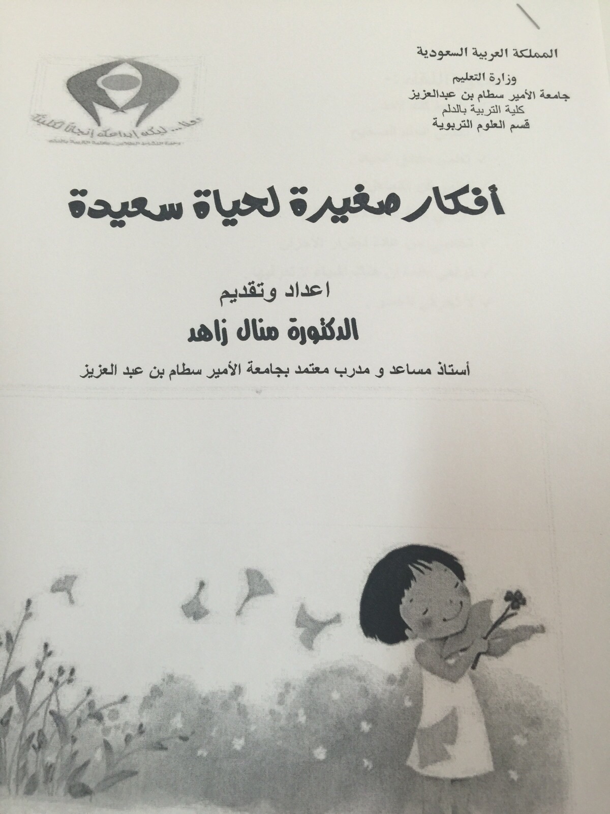 نظمت وحدة العمل الطلابي بالتعاون مع قسم العلوم التربوية دورة بعنوان " أفكار صغيرة لحياة سعيدة " إعداد وتقديم د. منال زاهد أستاذ مساعد بقسم العلوم التربوية ومدرب معتمد بجامعة الأمير سطام بن عبدالعزيز يوم الخميس الموافق 1436/12/25هـ الساعة العاشرة صباحا بقاعة الخنساء .