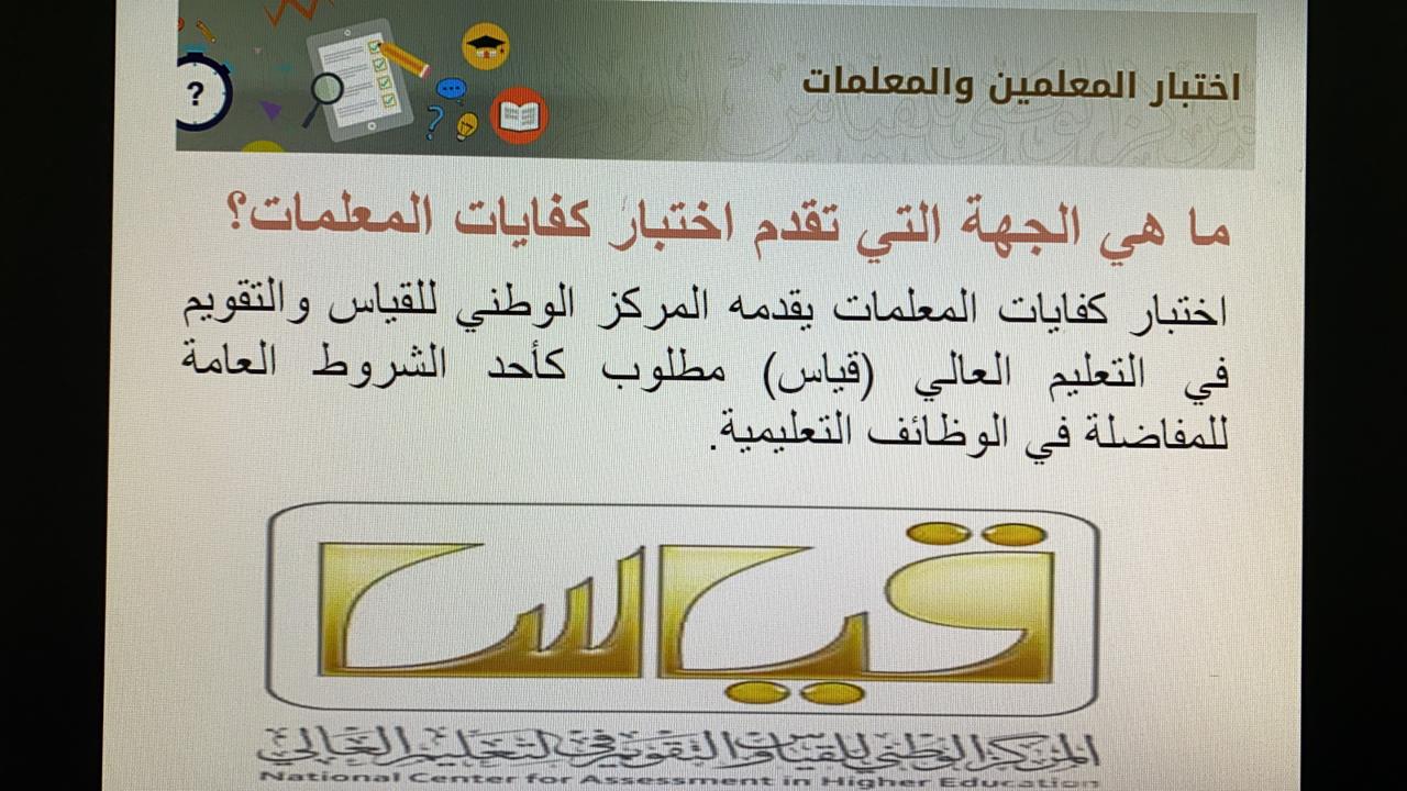 وتهدف الدورة لمساعدة الخريجة في اجتياز اختبار الكفايات المهنية للمعلمات والمساعدة في رفع الدرجات. كما تناولت الدورة اهم المعايير للاختبار ومحتوياتها :الكفايات التربوية , والكفايات العددية والكفايات اللغوية. وتتقدم الوحدة بالشكر الجزيل للدكتورة /نوال الرشود على تنفيذها للدورة حيث نالت الدورة إستحسان الجميع نسأل الله أن يعم بنفعها ويبارك بأعمال المدربة ويجعل جهودها في موازين حسناتها.