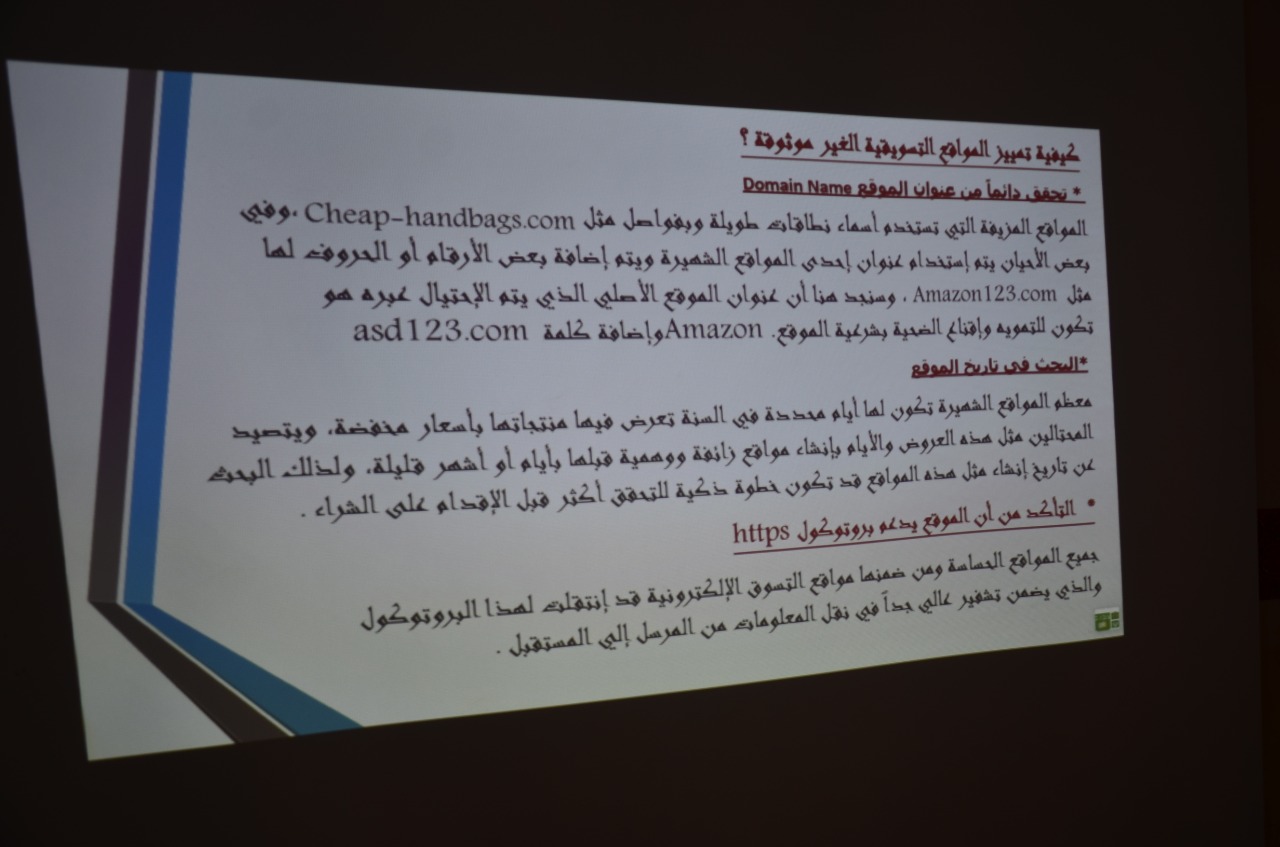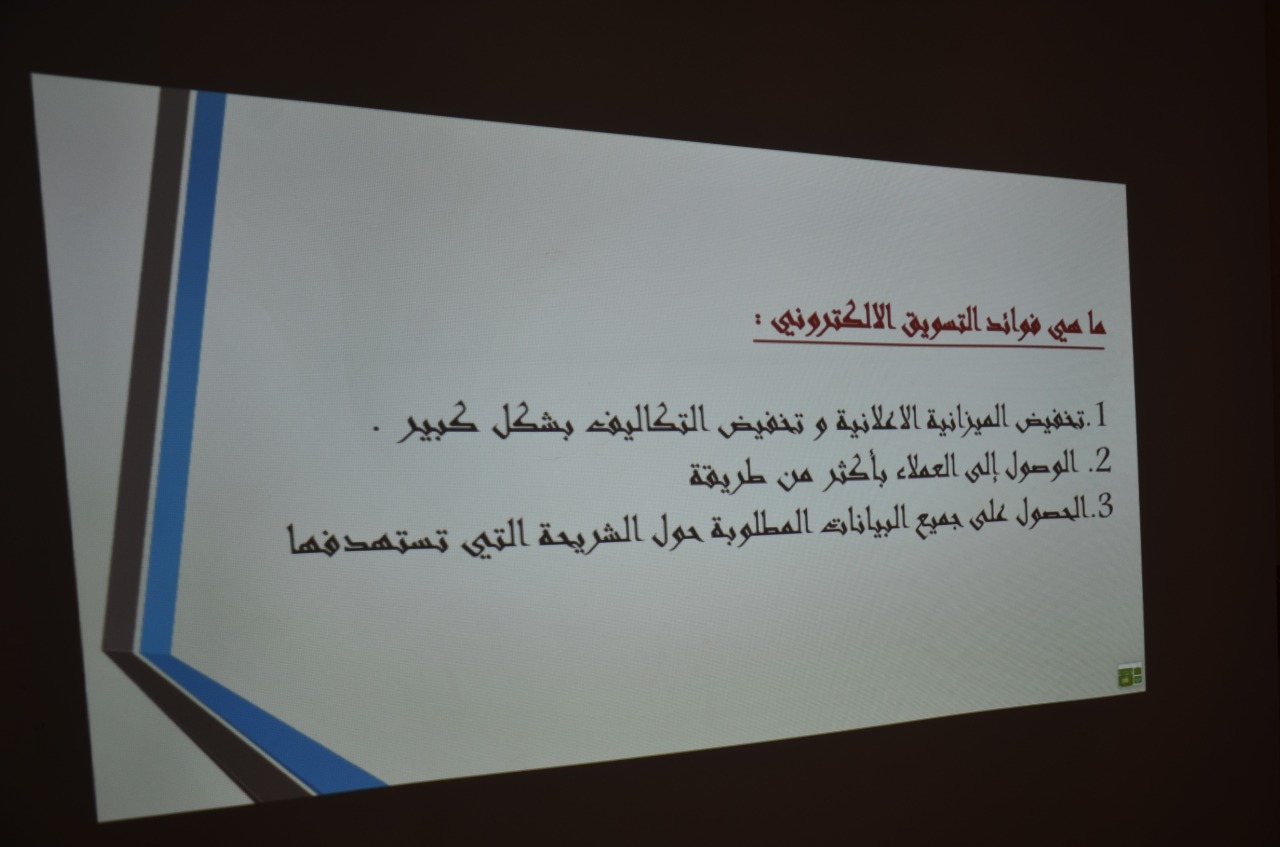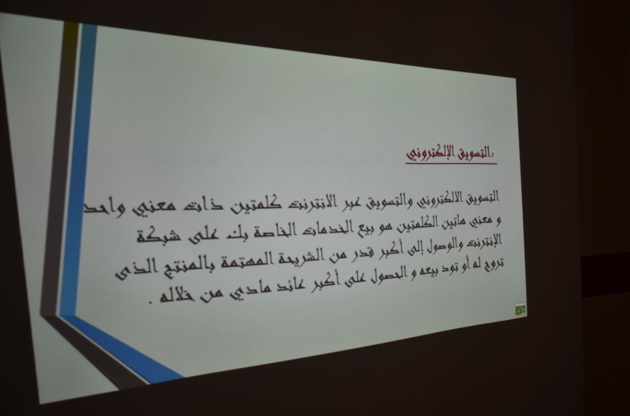قامت وحدة الخريجات بكليات الأفلاج (قسم الطالبات) يوم الخميس 1441/2/25هـ الساعة الثامنة صباحاً في القاعة الرياضة للأقسام العلمية بتنظيم دورة بعنوان (الإبداع في التسويق الإلكتروني) قدمتها أ. نمشه ناصر آل سليمان، تحدثت فيها عن التسويق الإلكتروني من حيث تعريفة و فائدته و أقسامه، ثم ذكرت الاستراتيجيات الإبداعية في التسويق الإلكتروني، و مميزات وعيوب التسويق الإلكتروني، كما ذكرت عوامل هامة تؤثر في نجاح الحملة التسويقية، و طريقة تمييز الموقع الموثوق والغير موثوق، واختتمت الدورة بالإجابة عن استفسارات الطالبات.