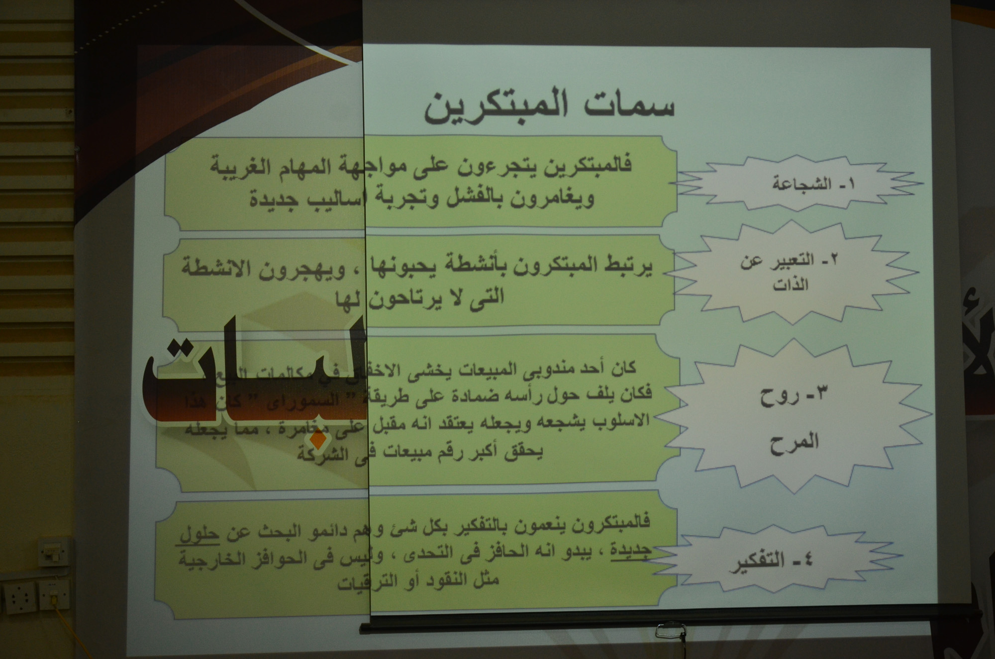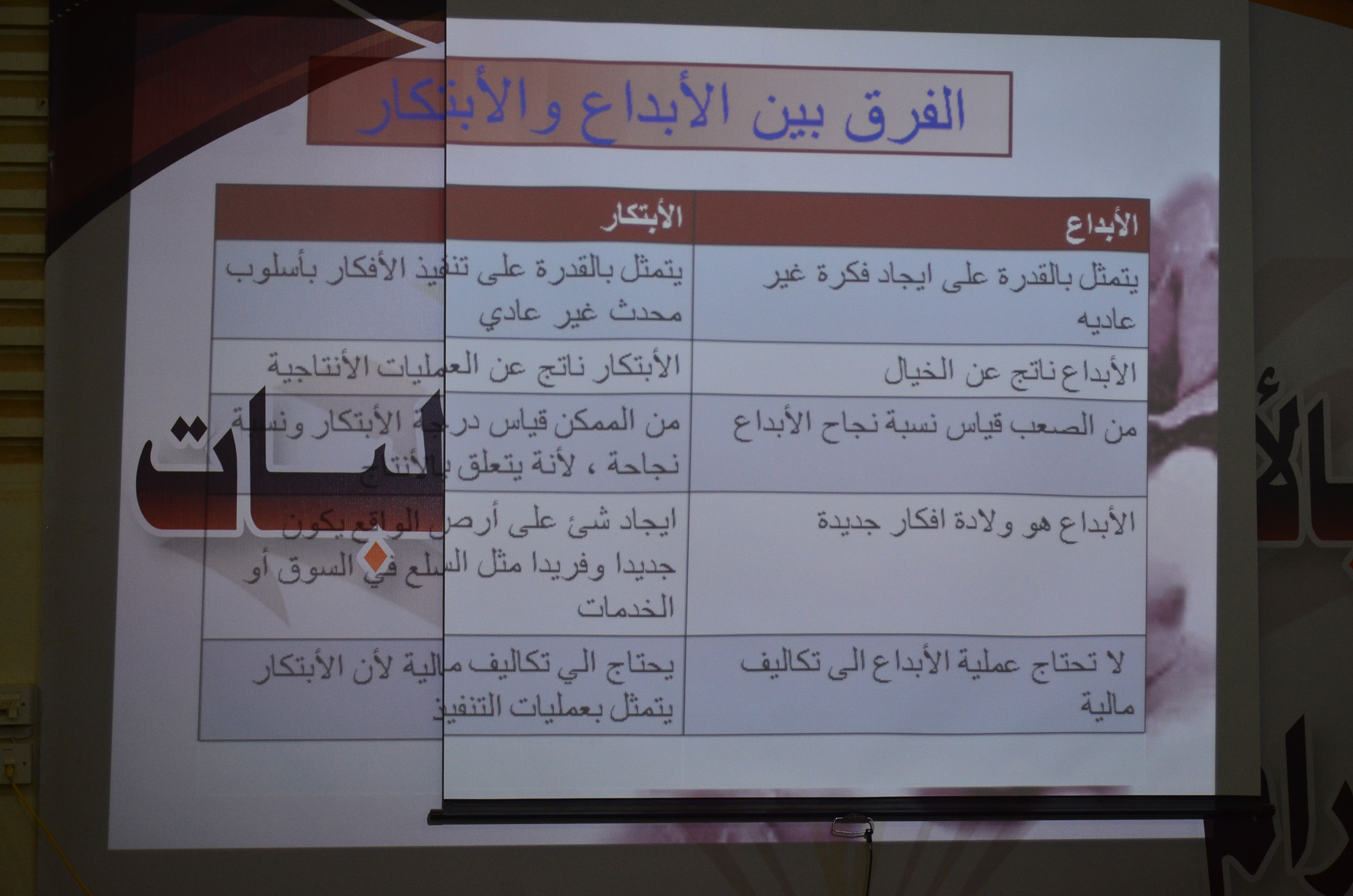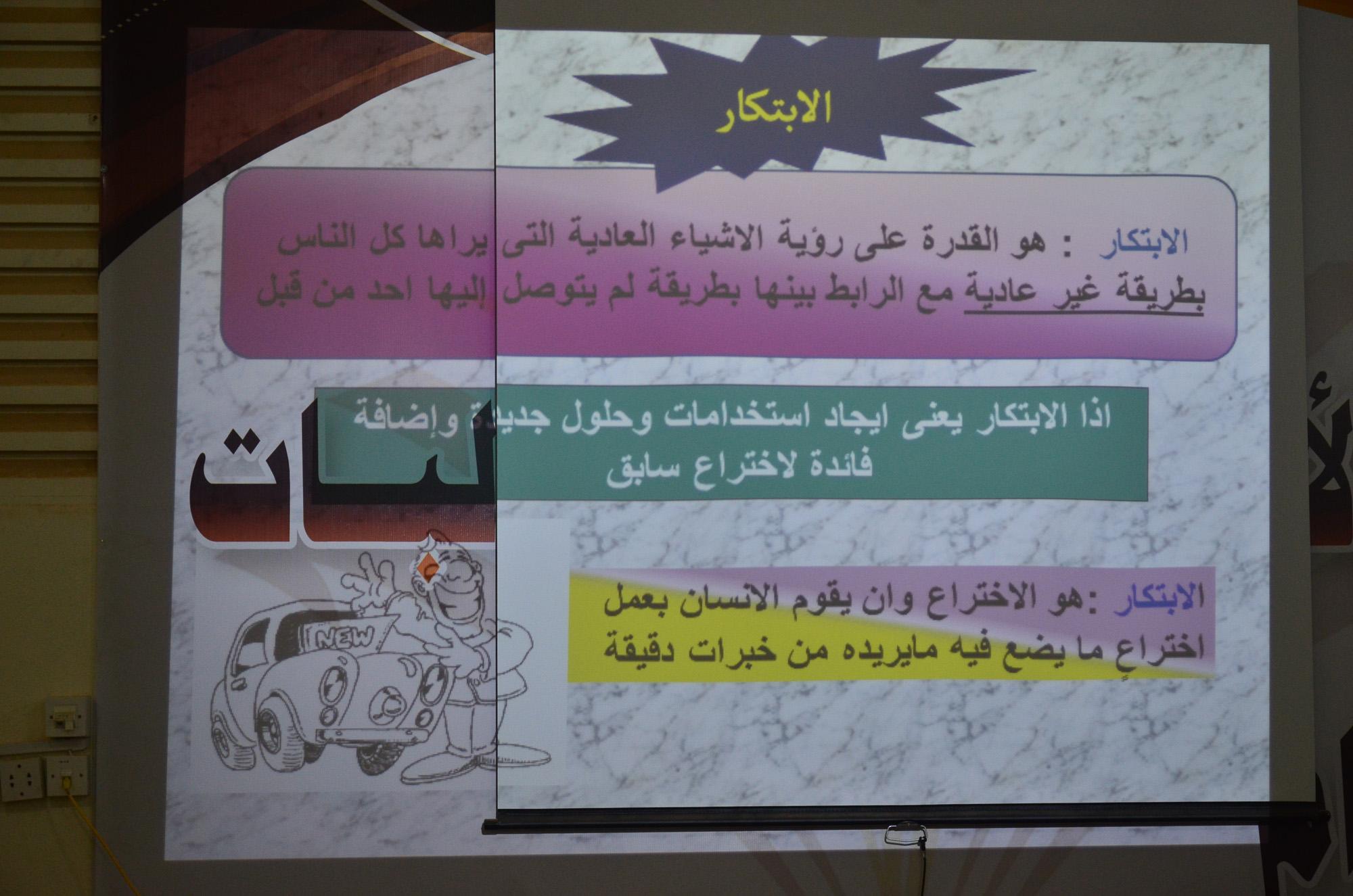 نظمت لجنة الملتقى العلمي الثالث بكلية العلوم والدراسات الإسلامية بالأفلاج ( شطر الطالبات ) يوم الأحد 1440/5/21 هـ الساعة التاسعة صباحاً في مسرح الكلية دورة بعنوان ( الابتكار و الإبداع ) قدمتها الأستاذة منى البهي , تناولت فيها ماهية الابتكار و الإبداع و الفرق بينهما , وكيفية الابتكار وسماته , و كذلك طرق توليد الأفكار و التعرف على كيفية حدوثها و تدوينها للمحافظة عليها ثم تطبيقها .
