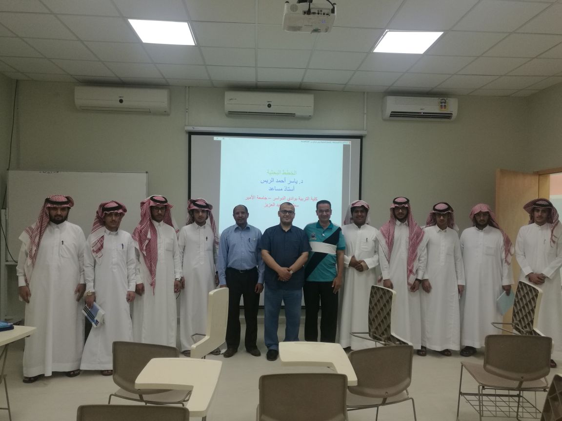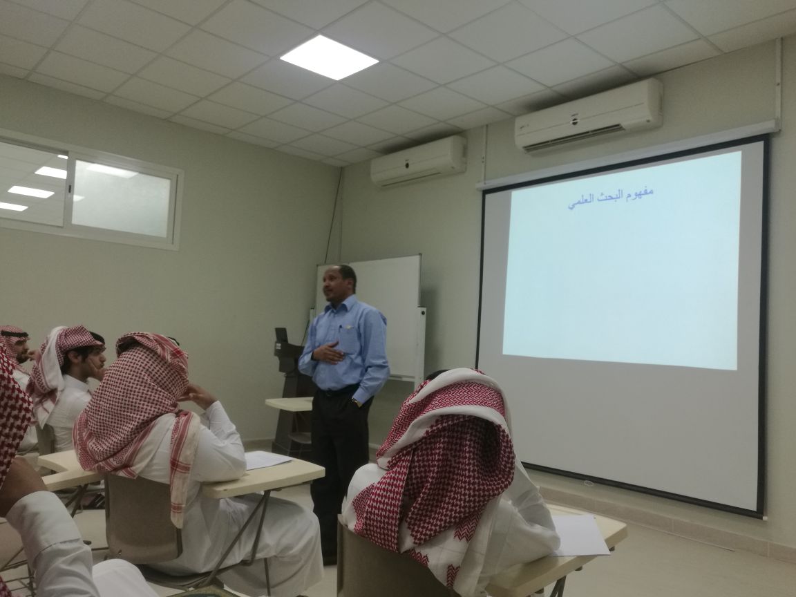قدمها الدكتور ياسر أحمد الريس عضو هيئة التدريس بكلية التربية ، وقد تم فيها عرض مفهوم البحث العلمي ليشمل بحث واكتشاف وتتبع وتحري وعلم وطريقة للتفكير والتقصي والتفكير والتنقيب والتأمل وصولا لهدف معين وتقصي الحقائق بأسلوب علمي للوصول إلى نتائج وتفكير تحليلي للوصول لنتائج صالحة للتعميم، كما تم تناول تصنيف البحوث العلمية في ضوء الهدف منها (علمية أساسية، تعميق - علمية تطبيقية، تطبيق) وفي ضوء المنهج ( تاريخية، فهم الماضي والحاضر والتنبؤ بالمستقبل – وصفية، وصف ظواهر وجمع البيانات حولها – تجريبية، التجربة للتحقق من الفروض) كما أن هناك البحوث طبيعية، العلوم الطبيعية – إنسانية، العلوم الإنسانية.