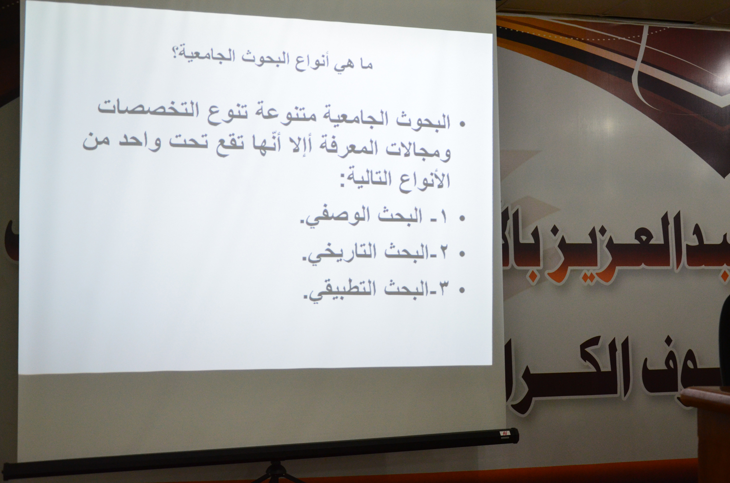 أقامت وحدة الخريجات بكليات الأفلاج (قسم الطالبات) يوم الأربعاء 1441/2/10هـ الساعة العاشرة صباحاً في المسرح دورة بعنوان (المنهجية في تخطيط البحوث العلمية) قدمتها د. ماجدة برعي، تحدثت فيها عن طبيعة البحث العلمي على مستوى مرحلة البكالوريوس وتطرقت لكيفية التدريب على منهجية البحث واستخدام المصادر و القدرة على اختيار المادة العلمية المطلوبة وأخذها من مصادرها الأصلية والثانوية، كما ذكرت أنواع البحوث الجامعية، وعناصر خطة البحث، ومحتويات البحث، واختتمت الدورة بالإجابة عن استفسارات الطالبات.