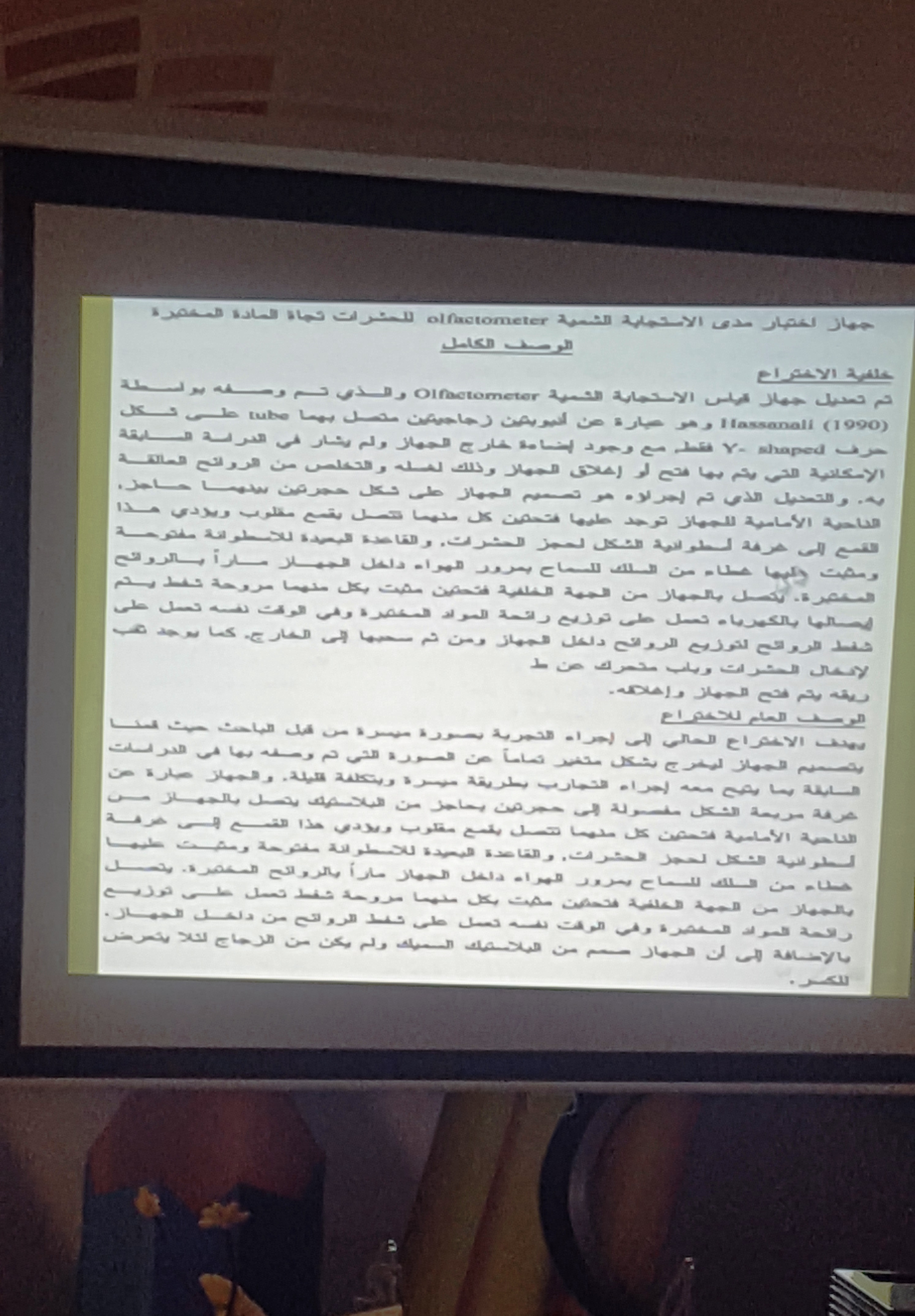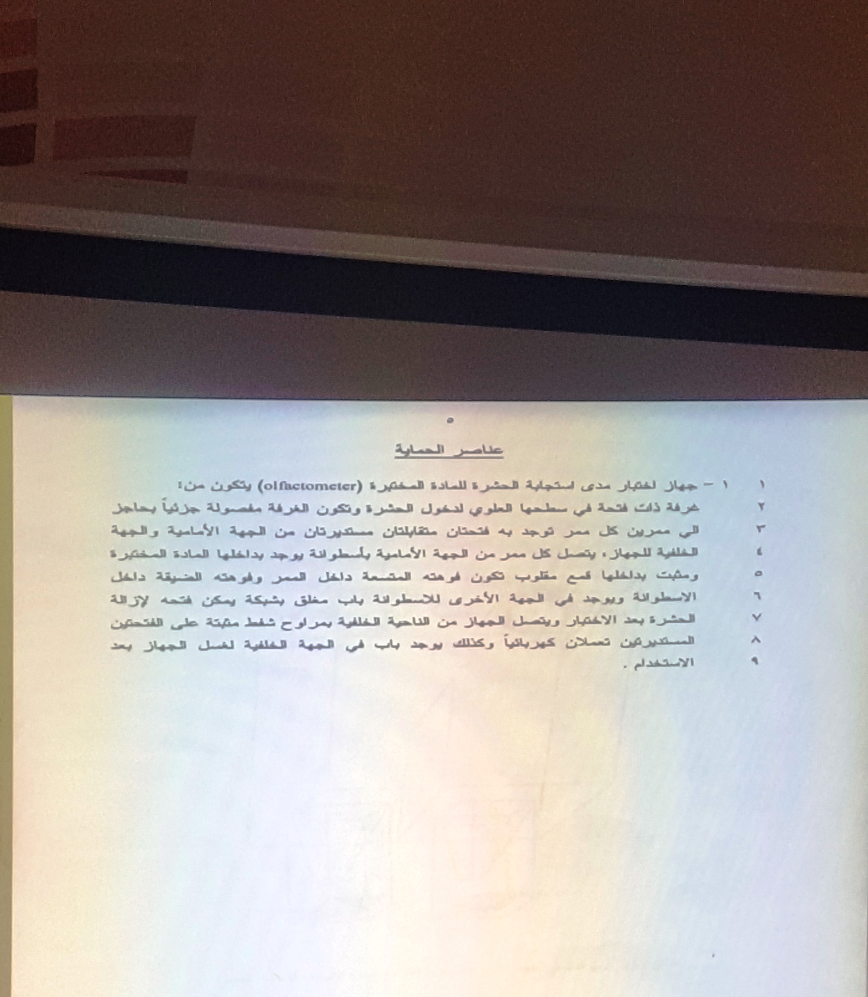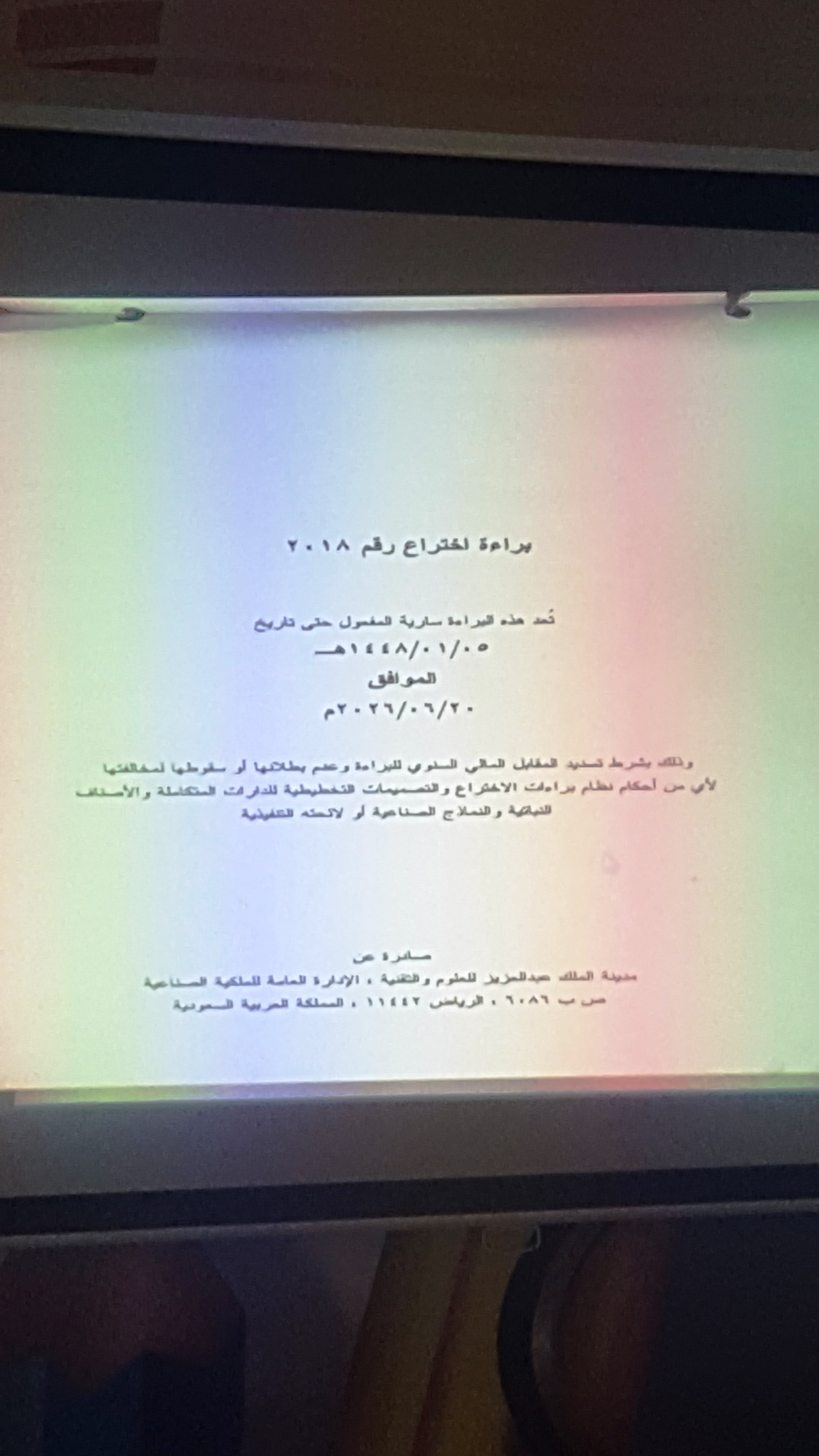وقامت الدكتورة بعرض صور براءة الاختراع الخاص بها - أنموذجًا - والتي تتضمن البيانات الخاصة بالمخترع واسم الاختراع بالإضافة إلى الوصف الكامل والوصف العام للاختراع وشرح مختصر لرسمة الجهاز والوصف التفصيلي له .