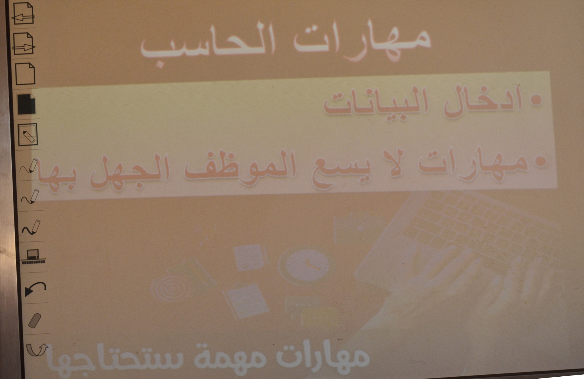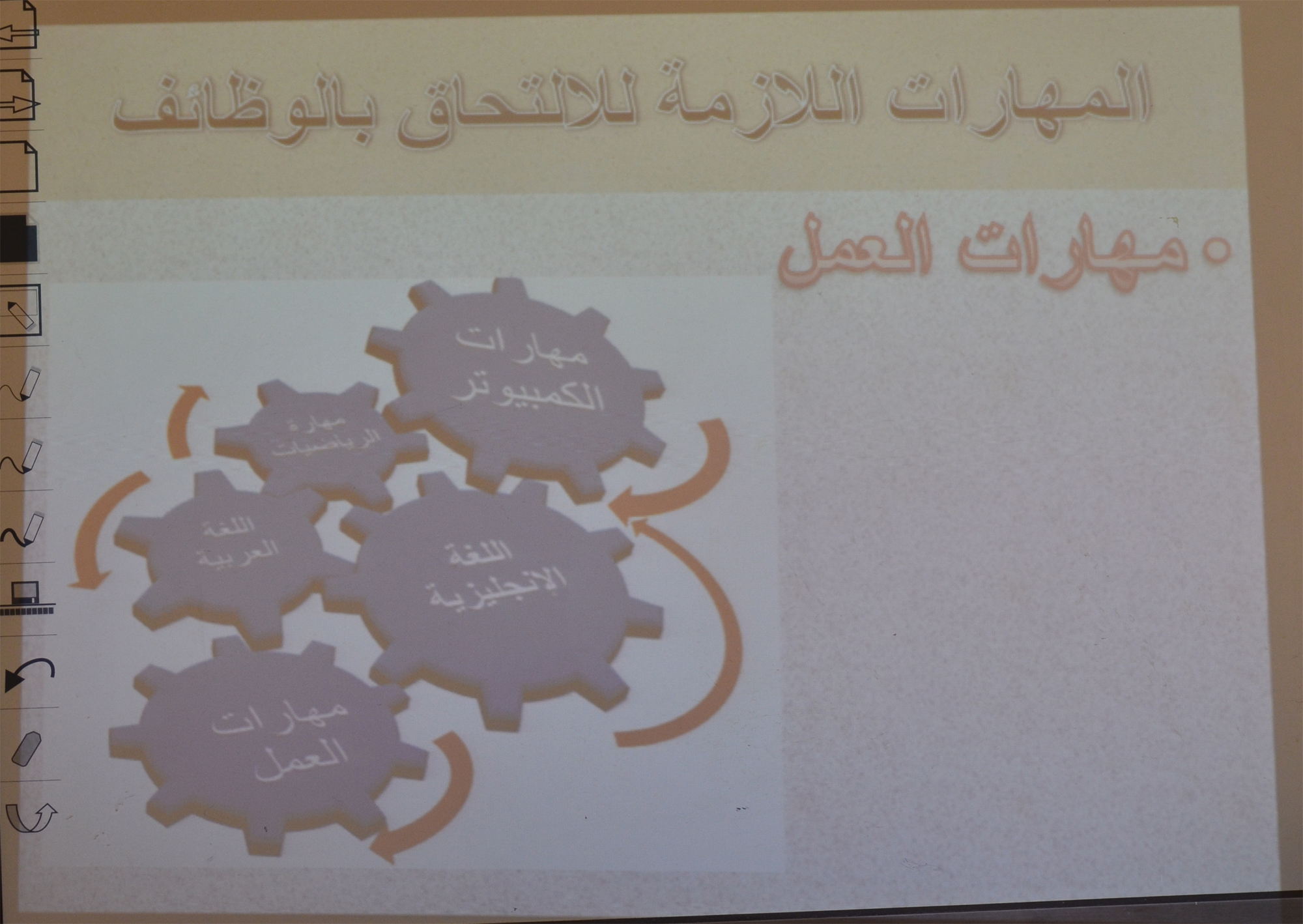 نظمت وحدة الخريجات بكلية العلوم والدراسات الإنسانية بالأفلاج (شطر الطالبات ) يوم الأثنين ١٤٤٠/٣/١١ هـ الساعة العشرة صباحاً دورة تدريبية عن التأهيل المهني قدمتها عضو هيئة التدريس الدكتورة غادة فتحي ، تناولت فيها طريقة الإستعداد لسوق العمل و تنمية المهارات الأساسية اللازمة للإلتحاق الوظيفي ، وكذلك ايضاً الضوابط الأساسية للمهنة و متطلبات سوق العمل ، كما ذكرت المهارات الأساسيية التي يجب إتقانها كاللغة من أجل تحقيق التواصل و القدرة على التعبير شفاهة و كتابة و إجادة لغة أجنبية ايضاً و المهارات الأساسية للحاسب الآلي ، انتقلت بعدها إلى ضوابط العمل التي تتمثل في الإلتزام بالمواعيد و التعاون و الإتقان و التميز وكذلك الإبداع .