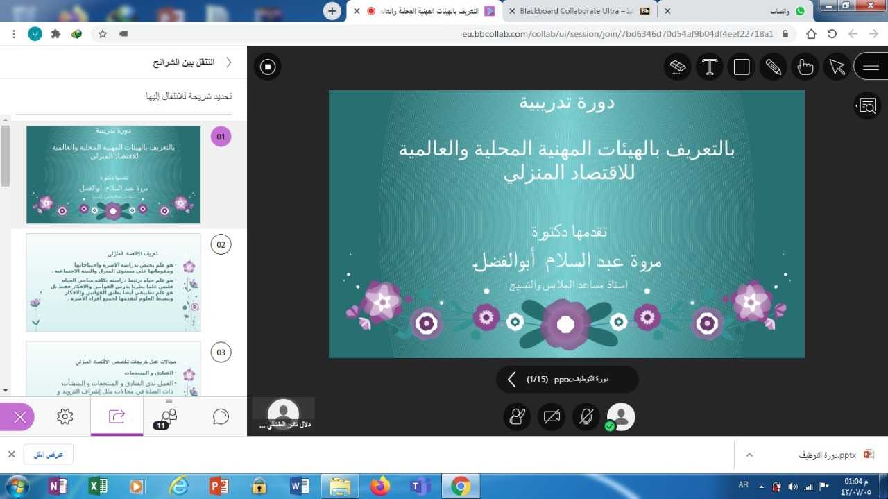 تحت رعاية سعادة عميد الكلية الدكتور/ ماجد على آل شريده، أقامت وحدة الخريجات (التأهيل الوظيفي) بكلية التربية بوادي الدواسر دورة تدريبية بعنوان (التعريف بالهيئات المهنية المحلية والعالمية للاقتصاد المنزلي)