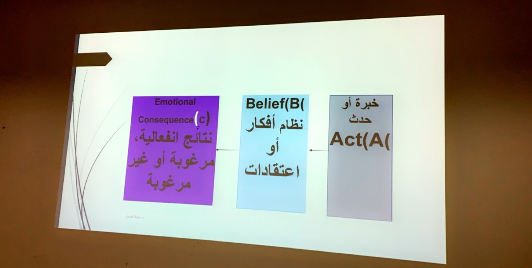 أقام قسم علم النفس دورة ( التفكير اللاعقلاني وعلاقته بالاضطراب النفسي)يوم الثلاثاء الموافق: 12- 7- 1440ه, للدكتورة/ خولة فهد الصفار. وتهدف الدورة لمعرفة الطالبات بتأثير الأفكار الوسيطة على استجابتنا المختلفة . وأن تعرف الطالبات بعض من نماذج الأفكار السلبية مع مناقشتهن فيها . وأن تعرف الطالبات بنماذج من الأفكار الإيجابية مع مناقشتهن فيها.
