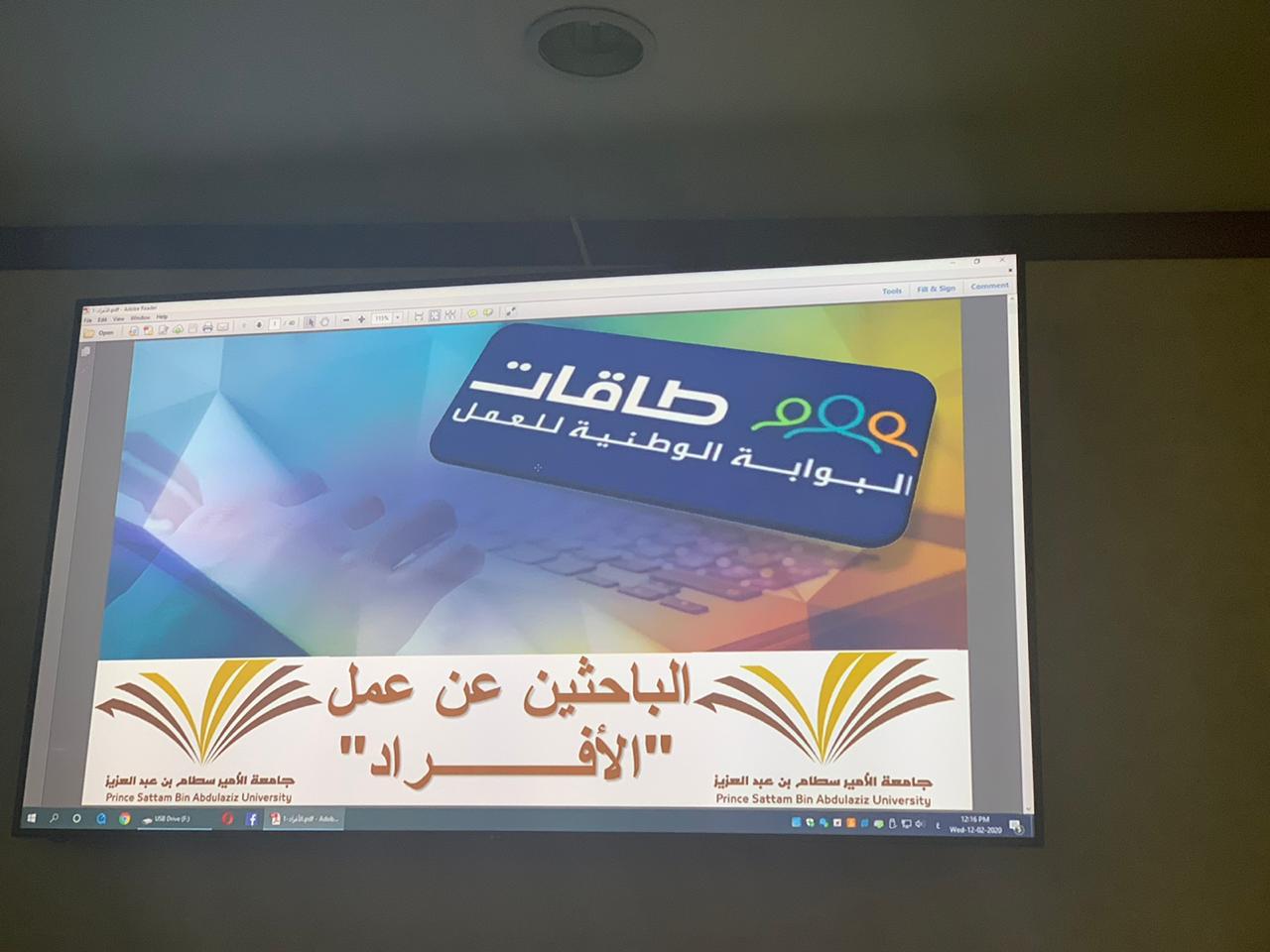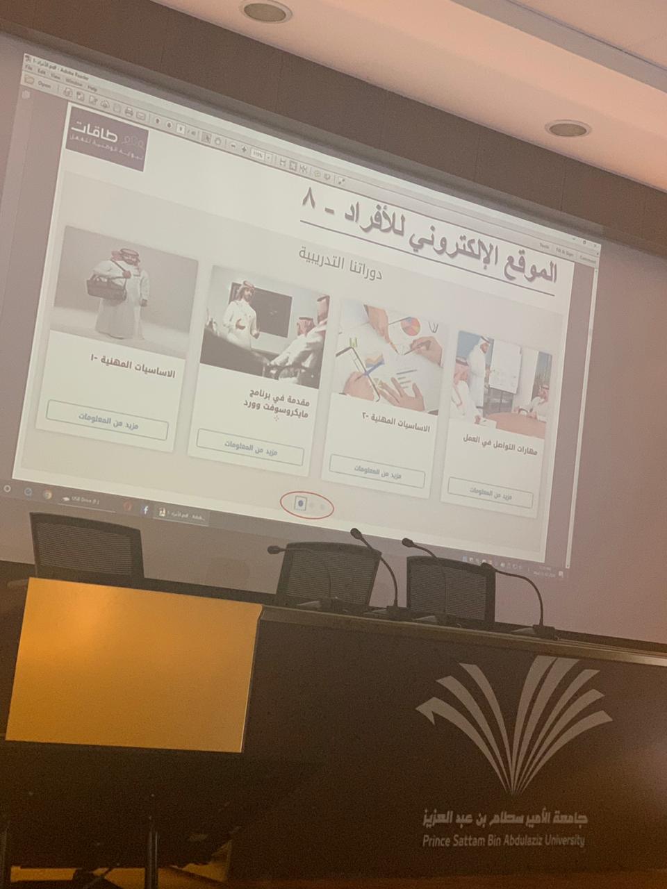 تحت إشراف لجنة التأهيل الوظيفي لوحدة الخريجات بكلية العلوم والدراسات الإنسانية بالخرج (طالبات) أقيم في يوم الأربعاء الموافق 18/6/1441هـ دورة بعنوان (التعريف ببوابة طاقات الوطنية للعمل) قدمها الدكتور الحسن أنوار عن طريق الربط الشبكي بمسرح الكلية حيث استهدفت الطالبات والطالبات المتوقع تخرجهن.