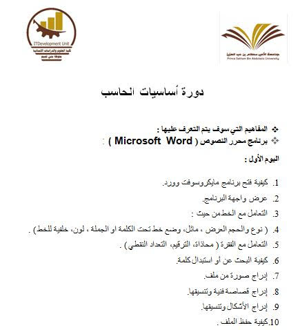 أقامت وحدة التعليم الإلكتروني والتعليم عن بعد بمركز تقنية المعلومات بكلية العلوم والدراسات الإنسانية بحوطة بني تميم دورة تدريبية للموظفات الإداريات عن (أساسيات الحاسب) وتمت الدورة تحت إشراف لجنة التطوير الإداري التابعة لوحدة التطوير والتدريب، حيث كان عدد الحضور 19 إدارية من الساعة 12 ظهرًا إلى الساعة الواحدة ظهرًا في الفترة من يوم الأحد 6 -6 -1438هـ إلى يوم الأربعاء 9 -6 -1438هـ بالمكتبة الرقمية بالكلية. هذا وقد تم تنفيذ الدورة بواسطة أ.عبير المجلي و أ. هياء المبخوت. وفي ختام الدورة تم وضع استبيان إلكتروني لتقييم مدى جودة الدورة التدريبة وقد حصلت الدورة على تقييم ممتاز.