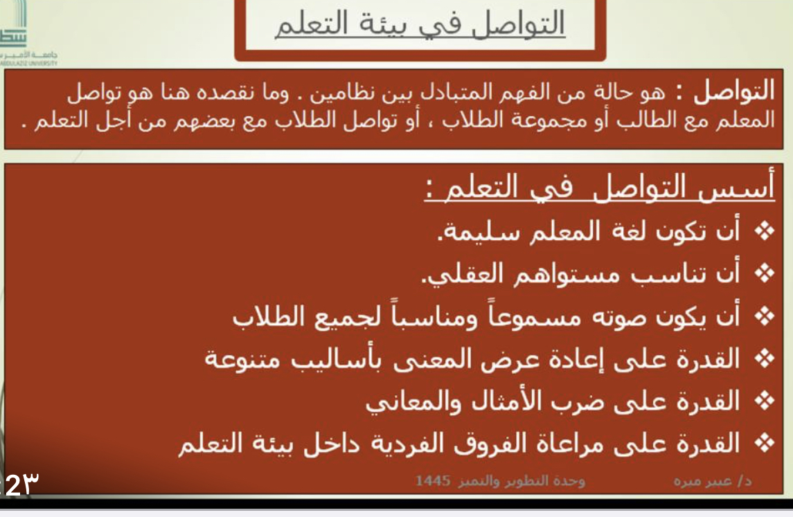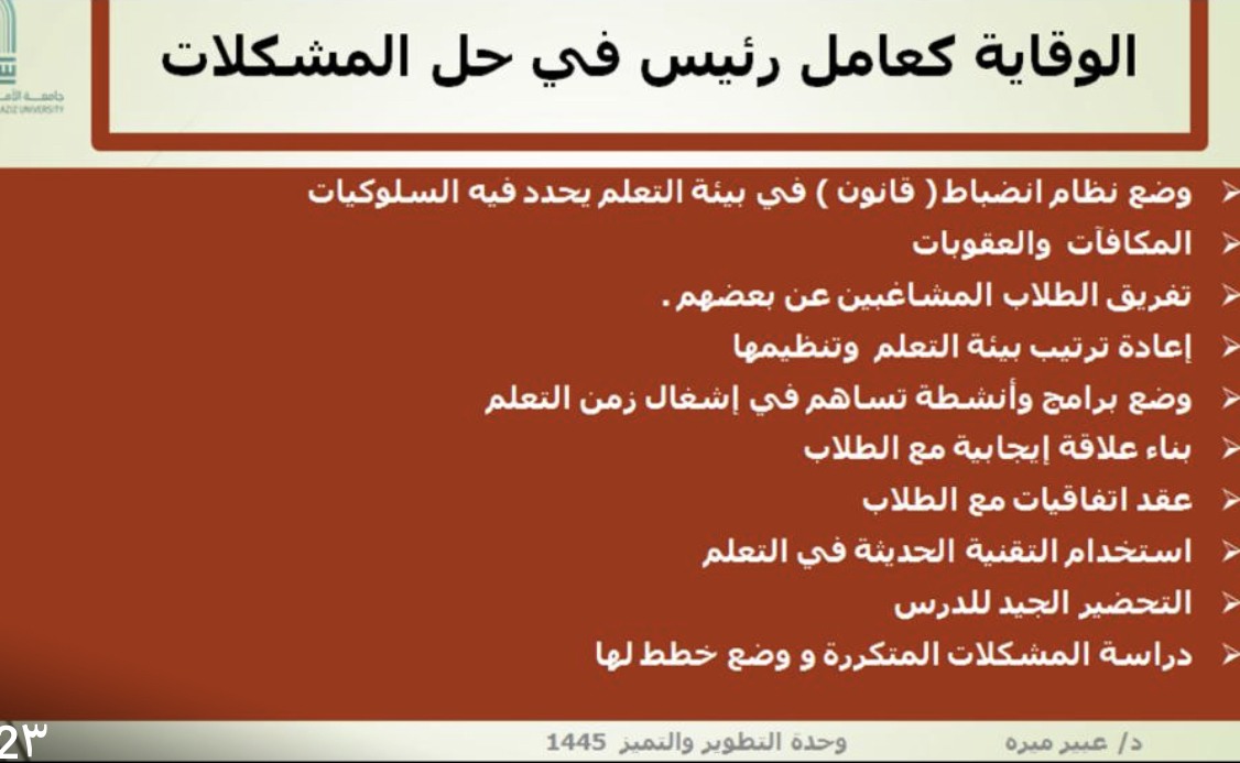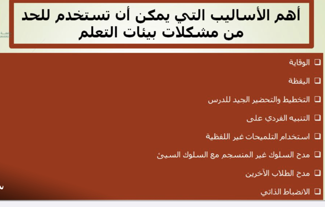 الاحتياجات الأساسية للطلاب داخل بيئة التعلم وقوانين بيئة التعلم أساليب تساهم في إدارة بيئة التعلم