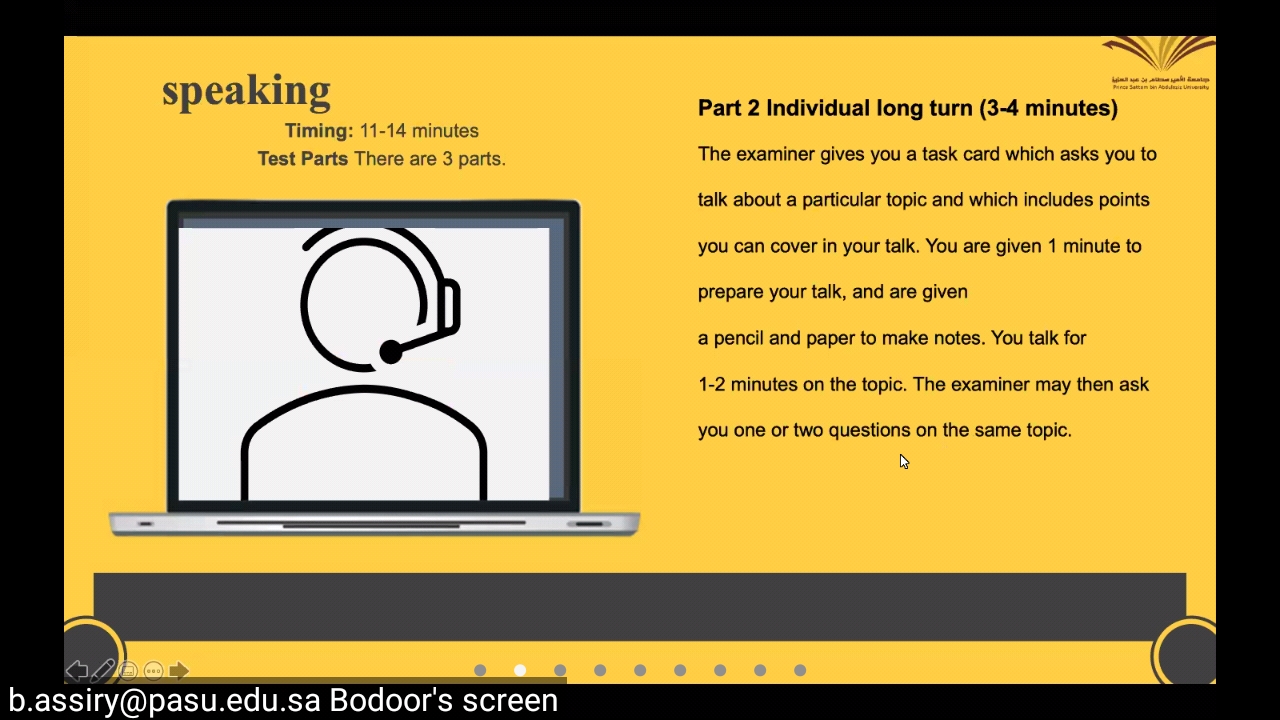 أقامت وحدة الخريجات .. مسار تنمية المهارات المهنية ..دورة ( بعنوان الاستعداد لاختبار الايلتس ) أعدتها وقدمتها أ / بدور العسيري .. قسم اللغة الانجليزية