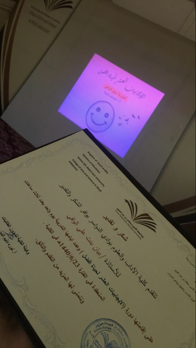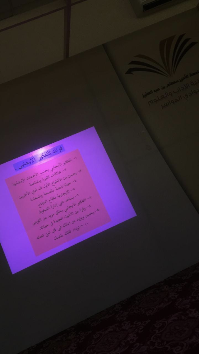 *"الإيجابيات العشر لحياة أفضل" دورة بكلية الآداب والعلوم للطالبات بوادي الدواسر *