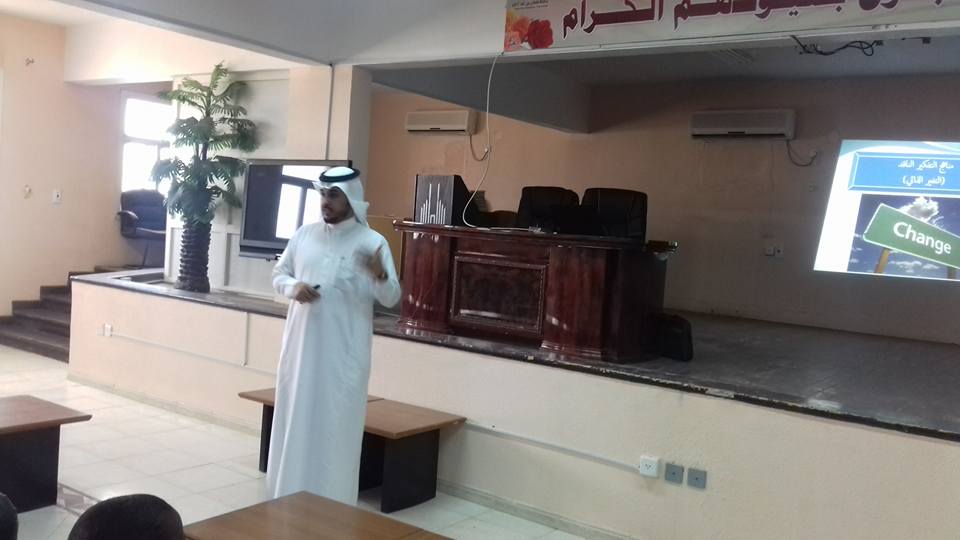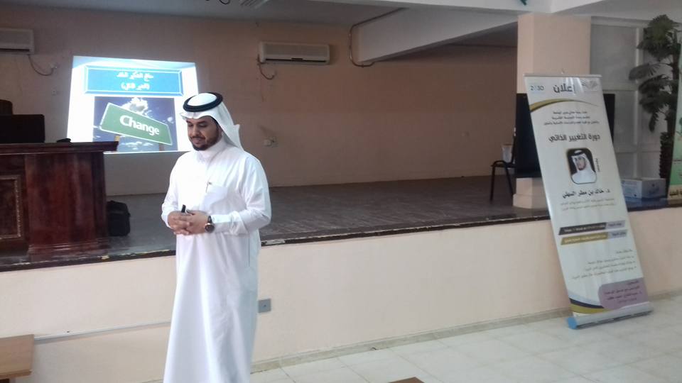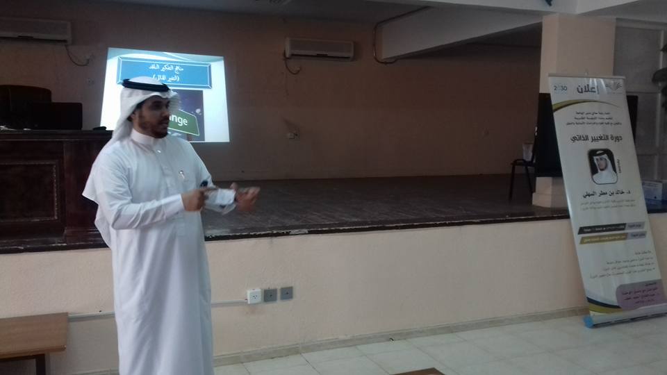 قدم الدورة الدكتور خالد بن مطر السهلي وكيل عمادة خدمة المجتمع والتعليم المستمر بوكالة الفروع حيث تضمنت الدورة عدد من المحاور من أهمها تعريف التغيير ومبرراته والمتطلبات الضرورية لإحداثه ، وأسباب مقاومة التغيير ، والمهارات المطلوبة في فن التغيير .