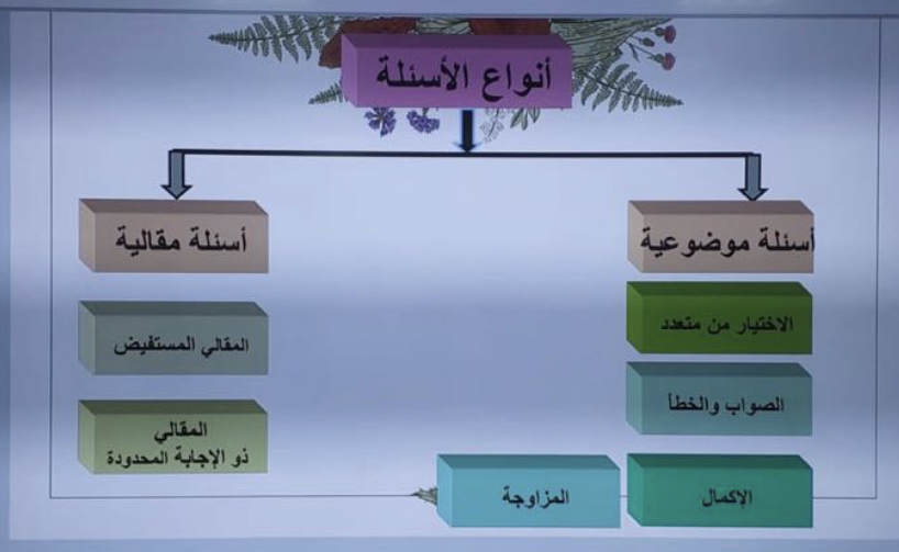 قدمت الورشة د.مروة مصطفى أستاذ مساعد ومشرفة قسم الكيمياء، حيث بدأت الورشة بتعريف الحضور بالاختبار الجيد و طريقة صياغته و أنواع الأسئلة ومصداقيتها.