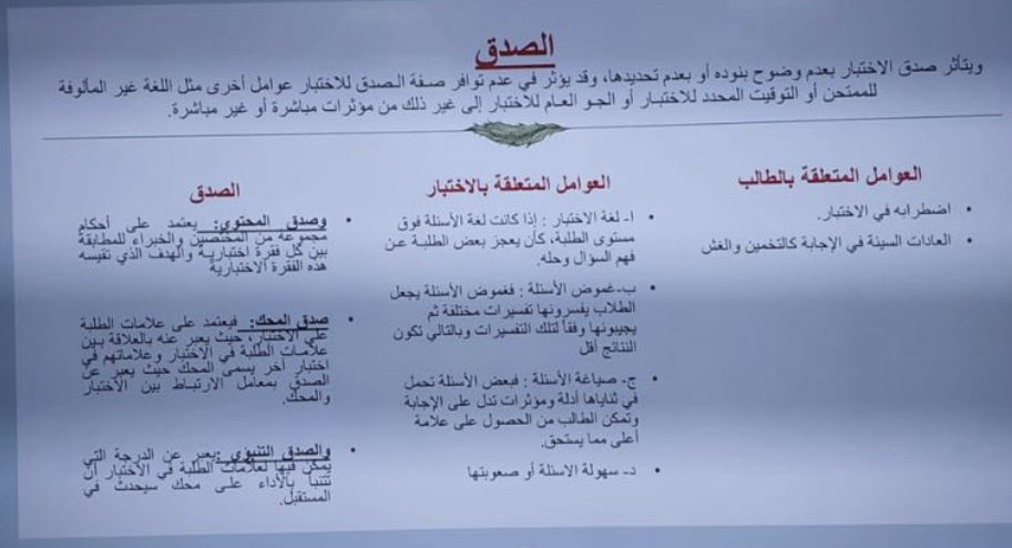 الصدق و أنواعه في وضع الاختبارات .