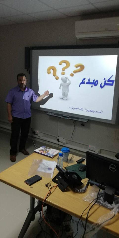 أقامت وحدة الخريجين بكلية العلوم والدراسات الإنسانية بالسليل بإشراف الدكتور المنصف بوعنان قيزاني دورة تدريبية بعنوان "كن مبدعاً " ، قدمها الأستاذ رائد الحريزات المحاضر بقسم إدارة الأعمال يوم الخميس 12/7/1439هـ بمكتبة الكلية ، وذلك في ضوء توجيهات سعادة عميد الكلية الأستاذ الدكتور /عبدالله بن مساعد الفالح.