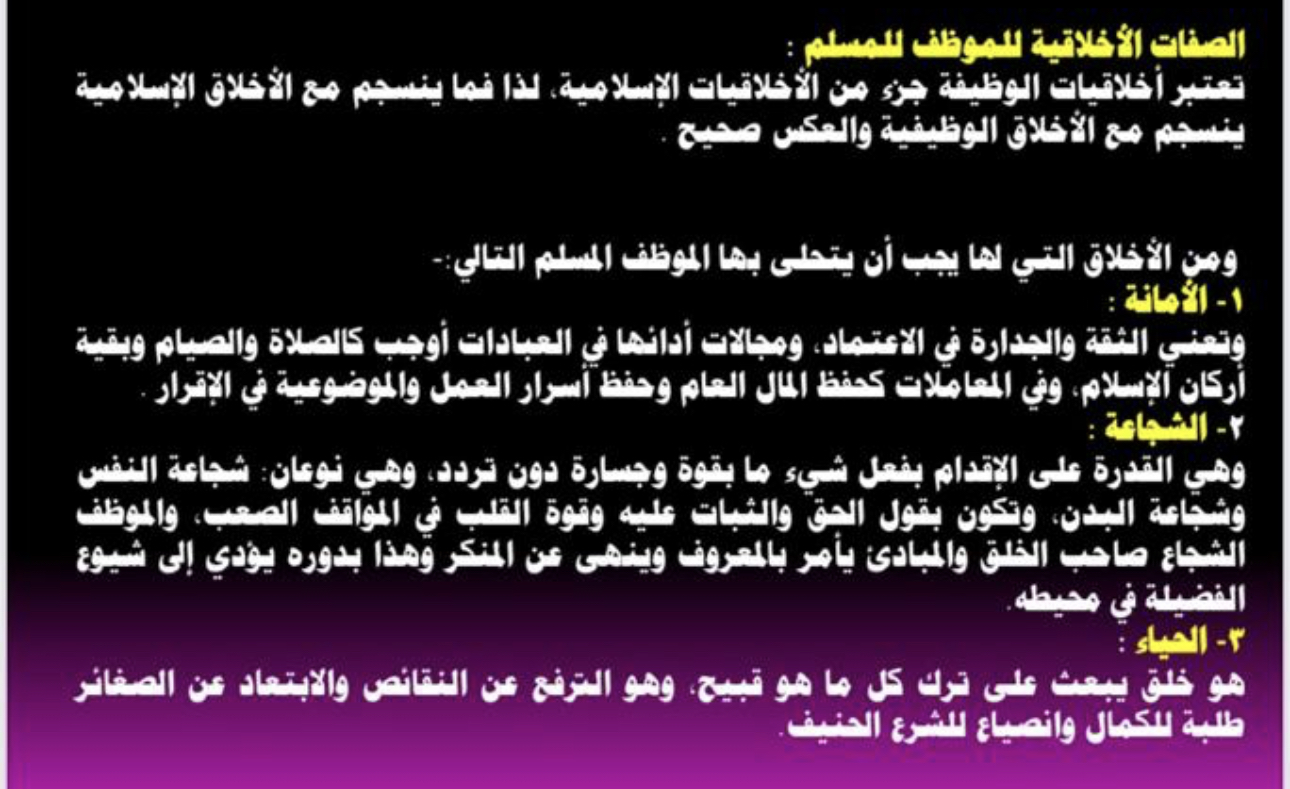 حيثُ بدأت الدورة بذكر الأخلاقيات التي يجب أن يتحلى بها الموظف وأثرها في إثبات تميز المؤسسة.