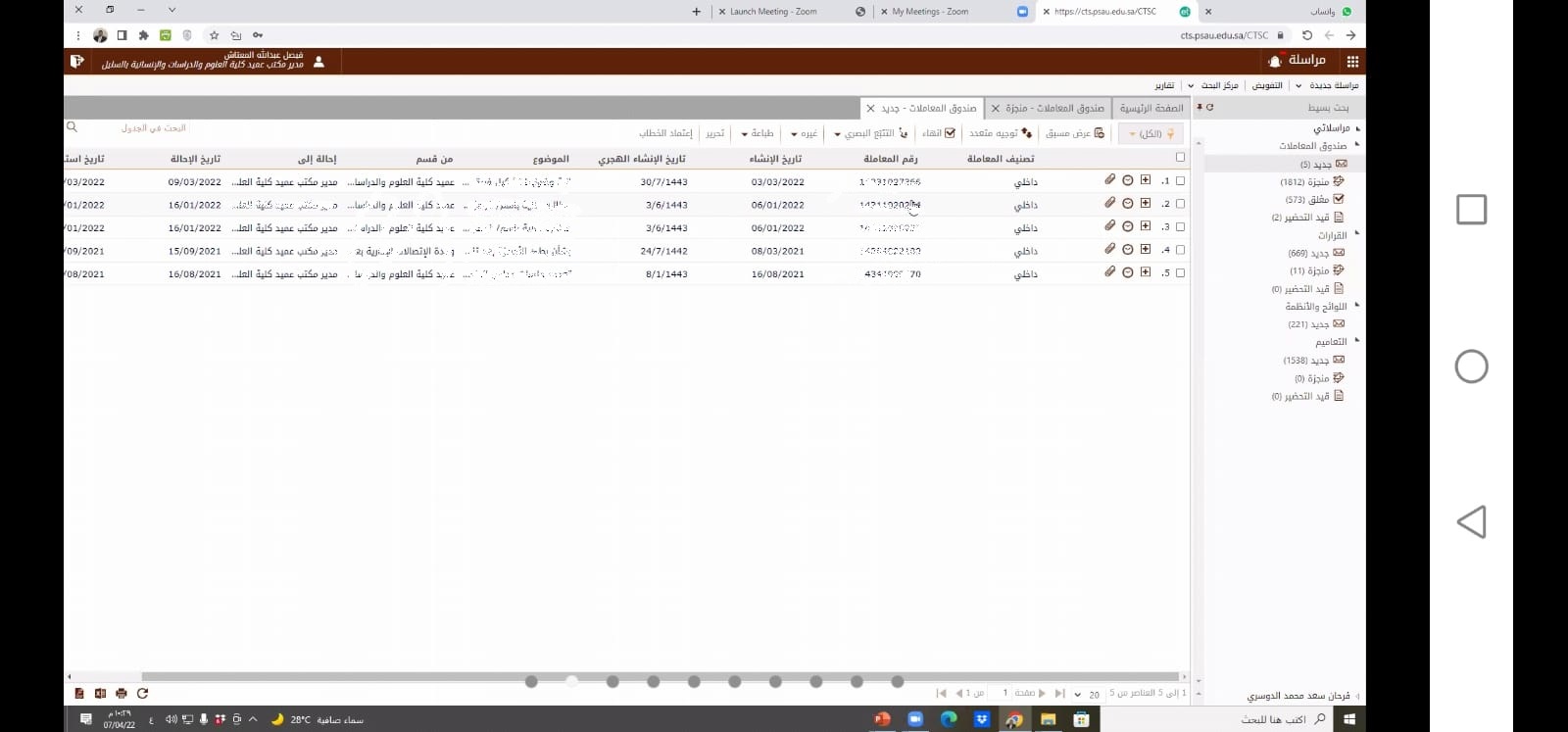 أقامت وحدة التطوير بكلية العلوم والدراسات الإنسانية بالسليل بتقديم دورة بعنوان " نظام سير المعاملات بجامعة الأمير سطام بن عبد العزيز " وذلك يوم الخميس بتاريخ ٦- ٩ - ١٤٤٣ وكانت موجهة للطاقم الإداري بالكلية من موظفين وأعضاء هيئة التدريس قدم الدورة أ. فيصل بن عبد الله المعتاش مدير مكتب عميد الكلية وهدفت الدورة إلى التعريف بنظام سير المعاملات وآليات ومهام وإجراءات الصندوق وفي نهاية الدورة عبر الحضور عن أهمية مثل هذه البرامج في تطوير العمل الإداري . وفي الختام تتقدم وحدة التطوير بجزيل الشكر والتقدير للأستاذ فيصل بن عبد الله المعتاش علي تقديمه لهذه المحاضرة وندعو له دوام التوفيق والسداد .