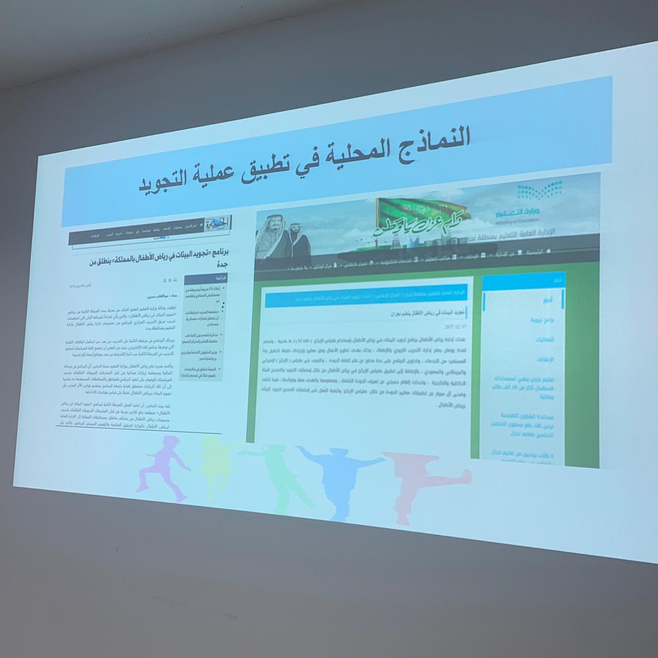 أقام قسم رياض الأطفال بالتعاون مع وحدة العمل الطلابي دورة بعنوان: ( تجويد البيئة الصفية في رياض الأطفال )يوم الأحد بتاريخ 1441/2/7هـ، للأستاذة/ منى الرفيدي و أ/ ندى آل ظافر، وقد تناولت الدورة عددا من المحاور، منها: تعريف البيئة الصفية برياض الأطفال وتعريف التجويد ( للبيئة الصفية )، والمقاييس العالمية والمحلية لتجويد البيئة الصفية برياض الأطفال، ونماذج لروضات محلية طبقت ( تجويد البيئة برياض الأطفال )، ووصف البيئة المادية الفيزيقية لرياض الأطفال، وتهدف الفعالية إلى إلمام الطالبات بأساسيات البيئة الصفية عالمياً ومحلياً، وتعرف الطالبات على المعايير الأساسية المتطلبة بالبيئة الصفية، وتقديم أفكار ومقترحات لتجويد البيئة الصفية، وتعرف الطالبات على محتويات البيئة المادية لرياض الأطفال.