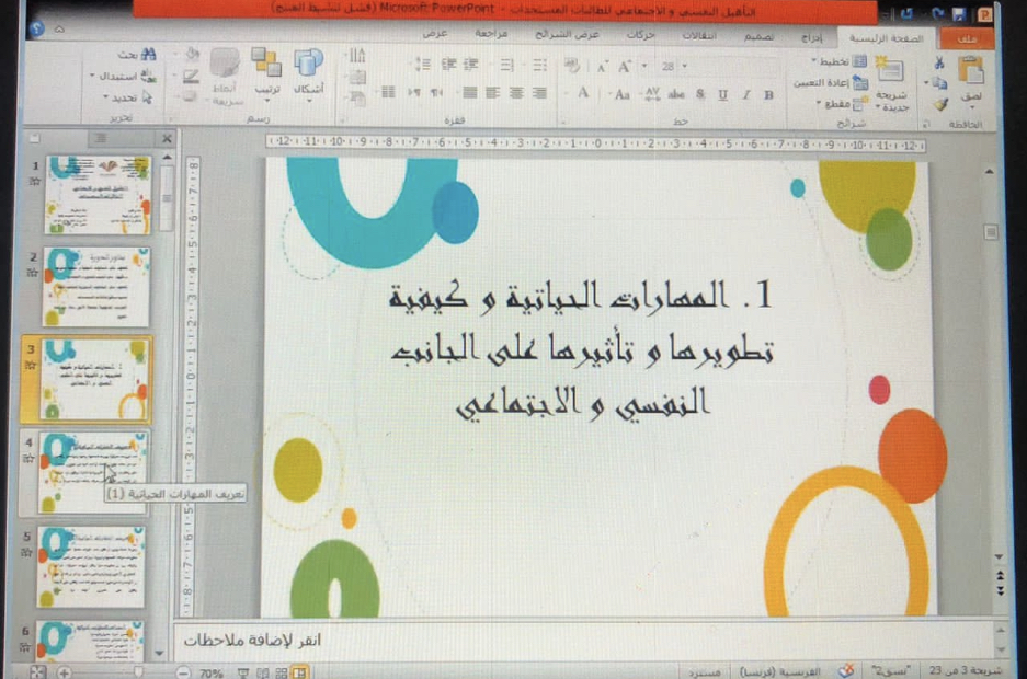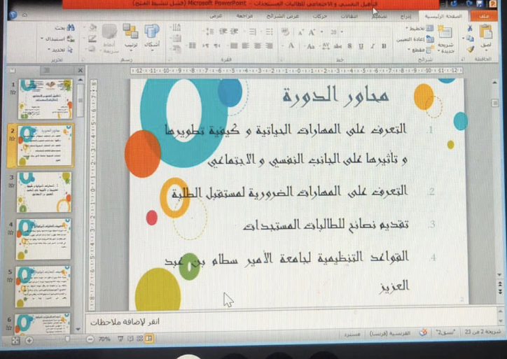 استهلت الدورة بفقرة ترحيبية بطالباتنا المستجدات للفصل الدراسي الثاني , و اشتملت الدورة على أربع محاور تضمن المحور الأول التعرف على المهارات الحياتية و كيفية تطويرها و تأثيرها على الجانب النفسي و الاجتماعي