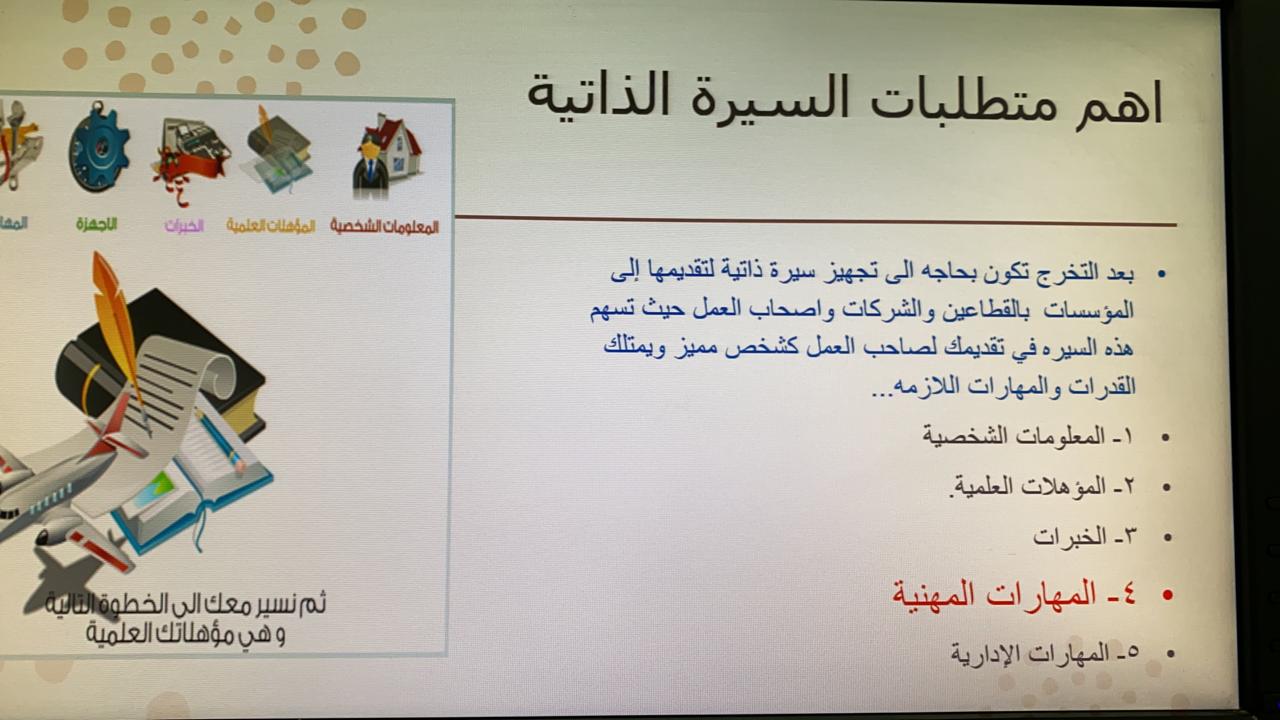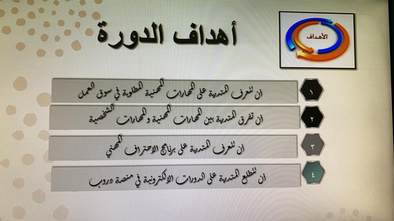 أقامت وحدة الخريجات في كلية التربية بالخرج دورة تدريبية بعنوان (بوابتك إلى المهنة), يوم الأربعاء في تاريخ13/2/1442هـ , عن بعد عبر برنامج (زوم)للأستاذة /لطيفة الداغري. وتهدف الدورة إلى التعربف بالمهارات المهنية المطلوبة في سوق العمل. والفرق بين المهارات المهنية والمهارات الشخصية كما تم التعريف على برنامج دروب منصة وطنية للتدريب الإلكتروني وهي إحدى مبادرات صندوق تنمية الموارد البشرية "هدف" التي تسعى إلى تطوير قدرات ورفع مهارات القوى الوطنية من الذكور والإناث وإكسابهم المهارات الوظيفية التي تدعم حصولهم على الوظيفة المناسبة والاستقرار فيها وفق متطلبات سوق العمل السعودي.كما تم الوقوف على برنامج الاحتراف المهني الذي اطلقتة الجامعة للخريجين والخريجات .