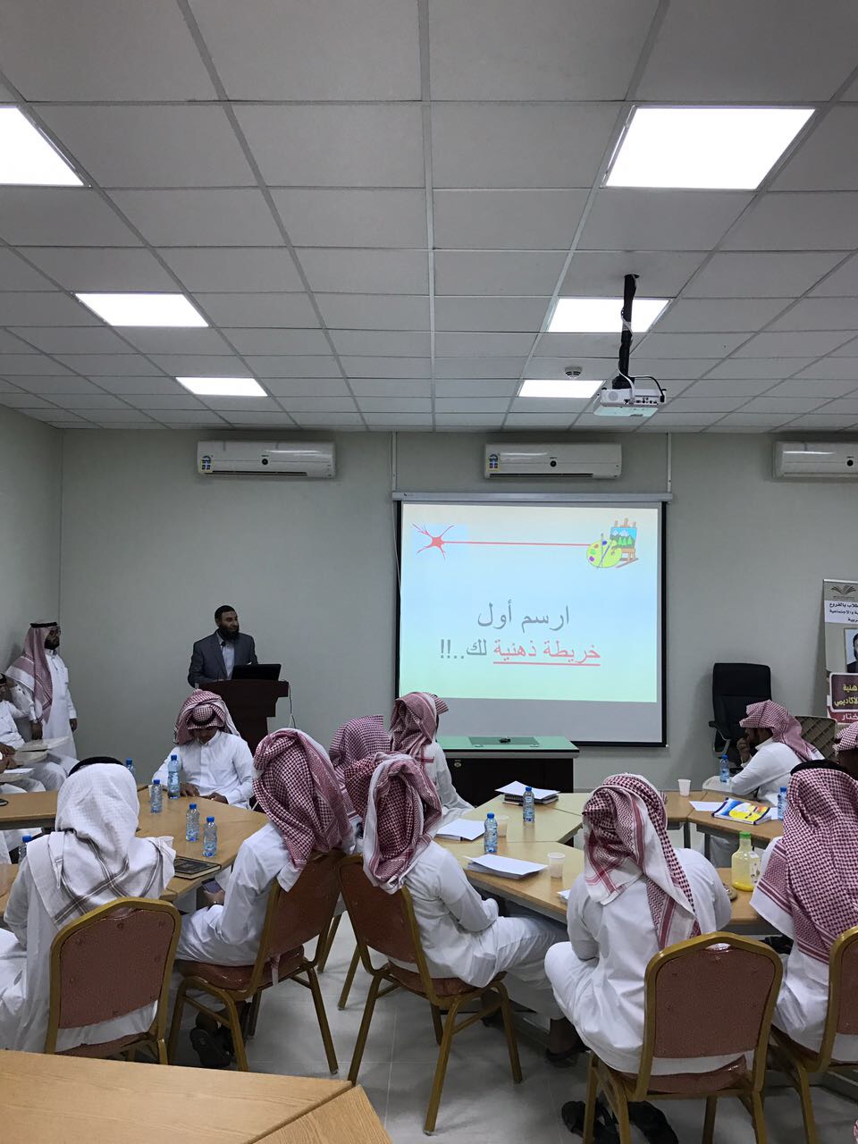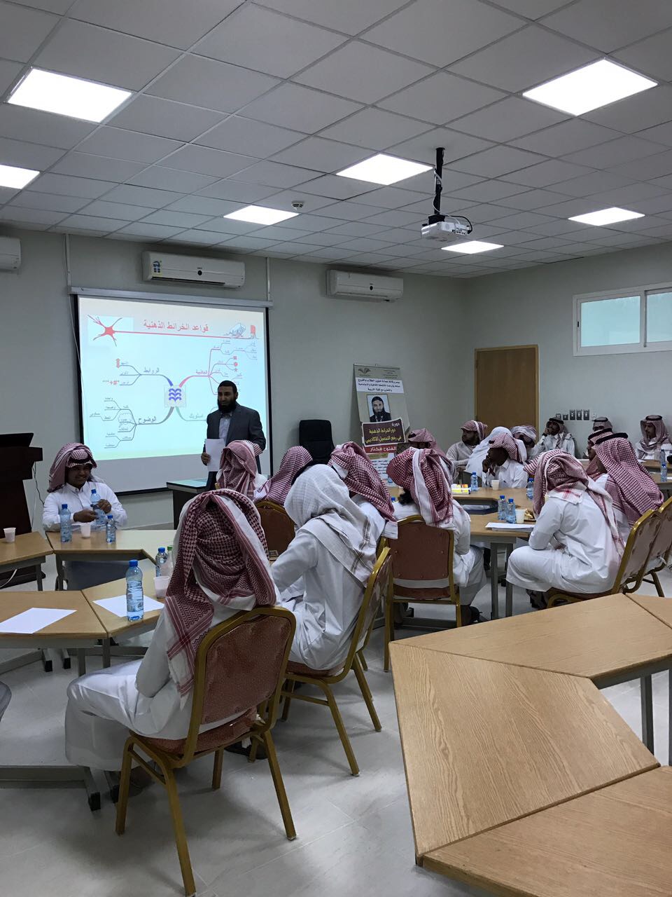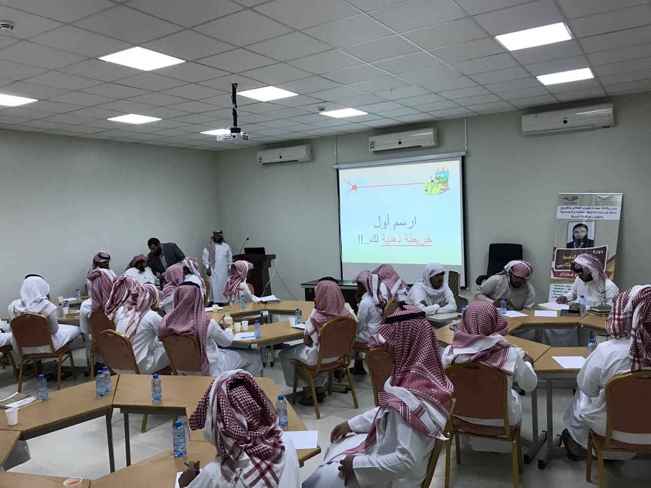 أقامت وكالة عمادة شؤون الطلاب بالفروع ممثلة بوحدة الأنشطة الطلابية بالتعاون مع كلية التربية بوادي الدواسر ضمن برنامج التدريبي ( مهاراتي سر نجاحي ) شطر الطلاب دورة تدريبية بعنوان ( دور الخرائط الذهنية في رفع التحصيل الأكاديمي ) قدمها الدكتور أبو الفتوح مختار عضو هيئة التدريس بكلية التربية وذلك بقاعة التدريب بكلية التربية بوادي الدواسر .