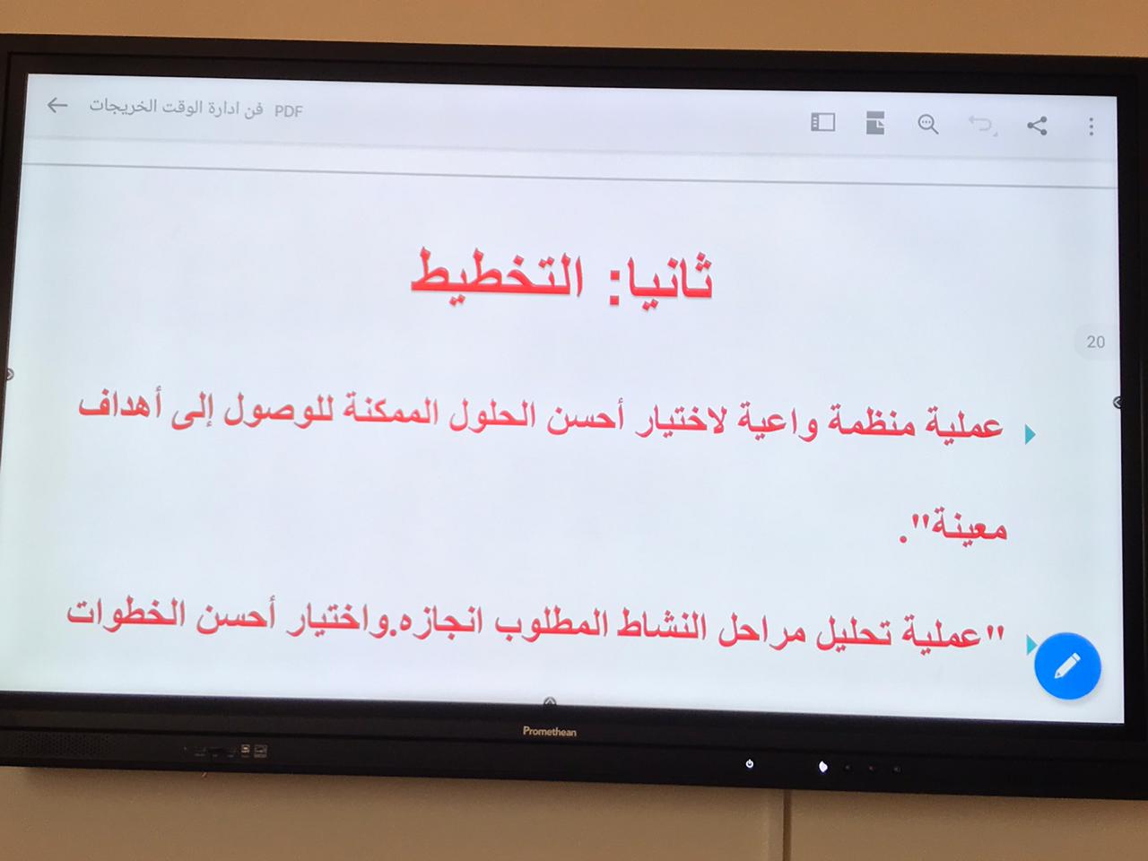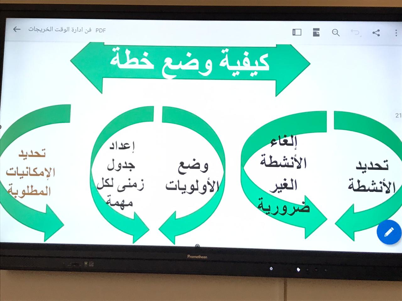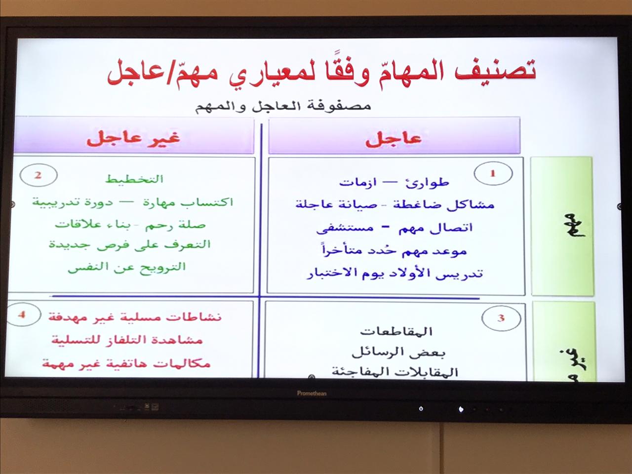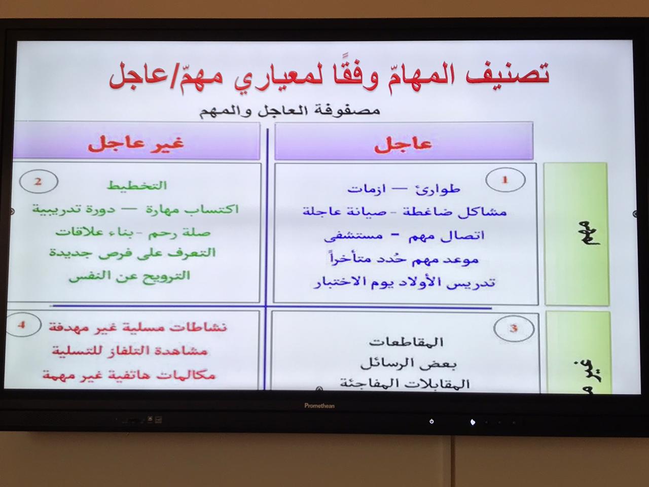 انطلاقا لأسبوع الإرشاد والتدريب المهني بكلية العلوم الطبية التطبيقية بوادي الدواسر نظمت وحدة الخريجات ممثلة في لجنة "التدريب الوظيفي" دورة تدريبية بعنوان ( فن إدارة الوقت) يوم الأحد الموافق ٢٢/٦/١٤٤١ في تمام الساعة الثانية عشر ظهرًا قدمتها دكتورة مجيدة عبدالعاطي سليمان مشرفة وحدة الخريجات بالكلية والتي هدفت إلى مساعدة الطالبات لمعرفة الطرق والوسائل التي تساعدهن على إدارة الوقت بفاعلية لتحقيق أهدافهن وتم شرح معني إدارة الوقت وأهميته وخصائصه والفوائد التي تعود علي الفرد والمجتمع من تنظيمه وكيفية تحليل الوقت والتخطيط والتنظيم والرقابة والمتابعة وكذلك الاستراتيجيات التي تساعد على إدارة الوقت بشكل جيد . واستمرت الدورة لمدة اكثر من ساعتين وحضر الدورة مجموعة من الطالبات وكذلك حضرت الدورة د / عطيات محمد حسن منسقة لجنة التأهيل الوظيفي بالكلية. وبعد الانتهاء من الشرح قام الجميع بالتسجيل على الدورات الإلكترونية بمنصة دروب وتم اختيار دورة (إدارة الوقت) وقمن بأداء الاختبارات المطلوبة وبفضل الله تعالى تم اجتياز الدورة بنجاح واستخراج الشهادة الإلكترونية للدورة. ولقت الدورة الترحيب من الجميع.