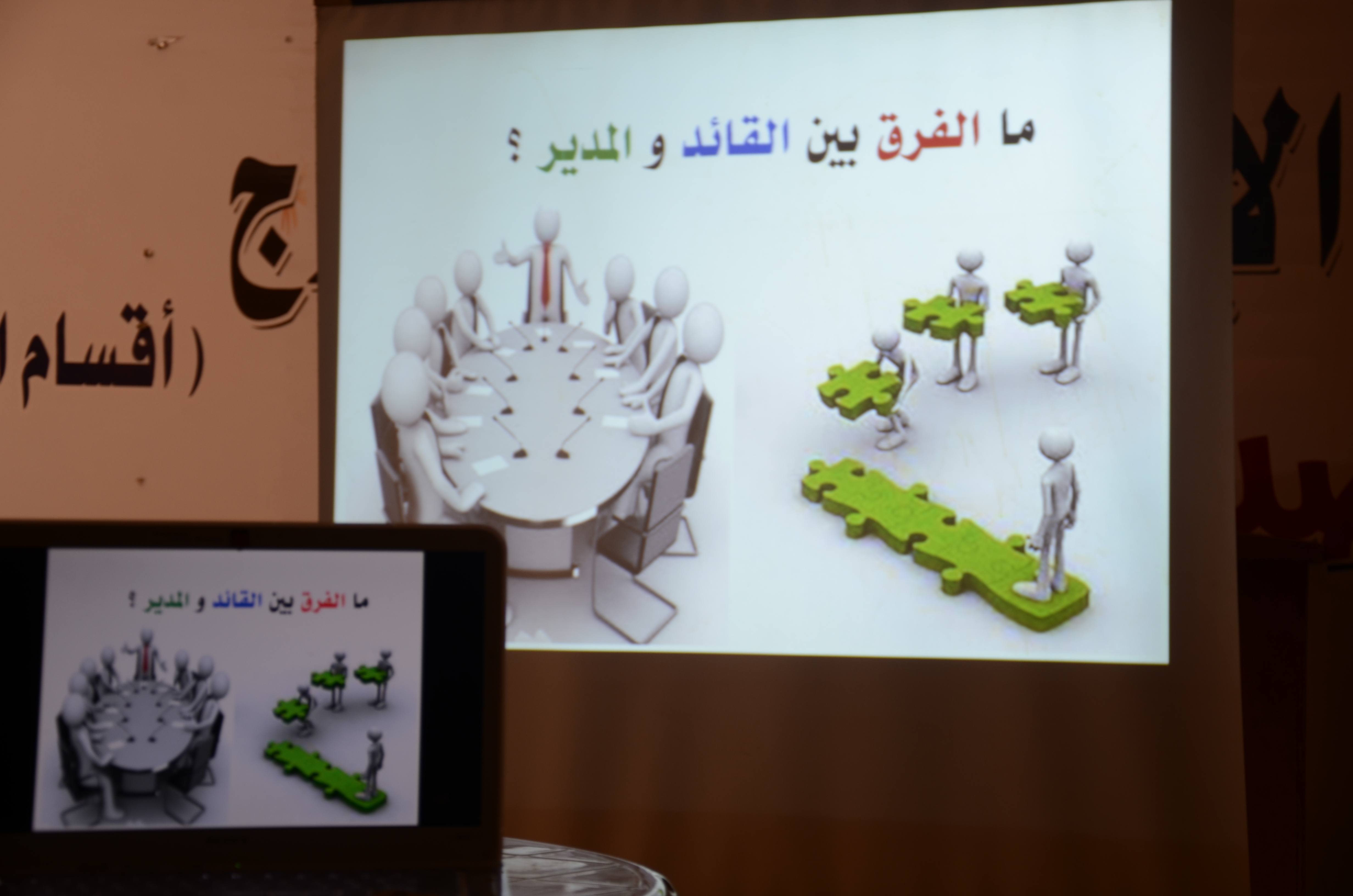تهدف الدورة إلى تعريف الطالبات بمفهوم القيادة، والفرق بين القيادة والإدارة، وكيفية قيادة فريق العمل، وكذلك معرفة عوائق التحفيز والتغلب عليها .