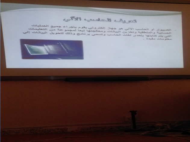 نظمت طالبات كلية الهندسة وعلوم الحاسب(قسم نظم المعلومات) بالخرج ، والمتدربات بكلية التربية بالدلم دورة تدريبية عن الحاسب الآلي تنفيذ الطالبات ( وجدان الحركان - سارة الداود - شذي الحركان - سارة المعيقل ) يوم الثلاثاء الموافق 14/10/1437هـ الساعة العاشرة صباحاً بقاعة الخنساء .