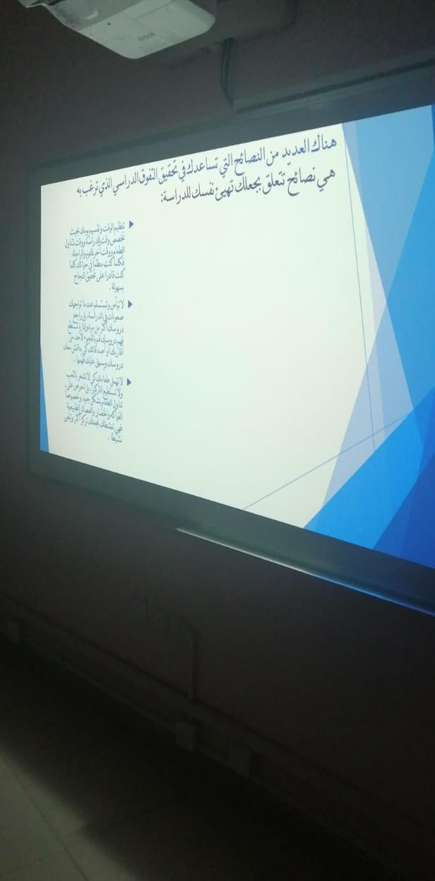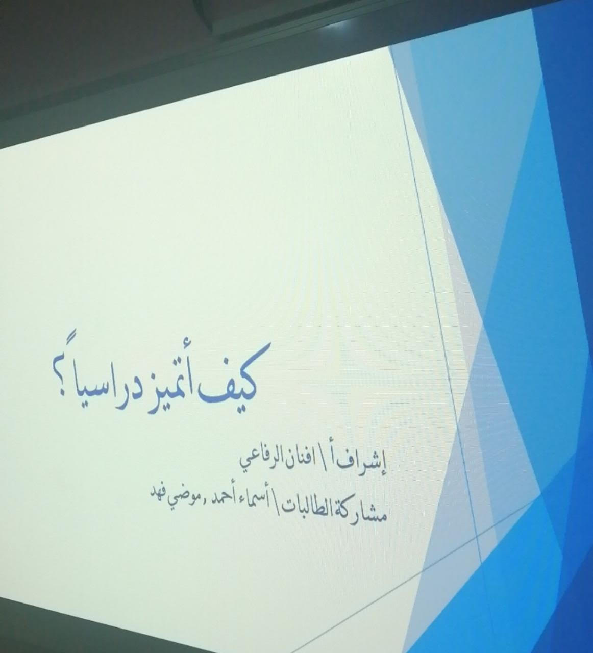 ثم تطرقت الطالبة أسماء الراشدي لعدة نصائح تساعد على التميز والتفوق الدراسي كما طرحت على الطالبات نشاط حول العوائق التي تحول بينهن وبين التميز الدراسي .