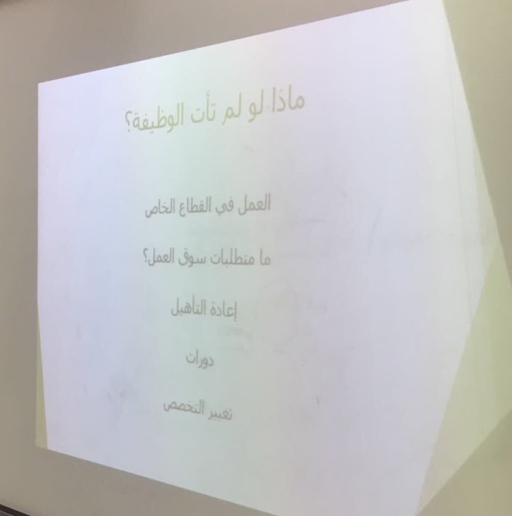 نظمت وحدة الخريجات في كلية التربية بالخرج قسم الطالبات بإشراف الأستاذة بتول العنزي دورة بعنوان (الوظيفة وماذا بعد التخرج ) للدكتورة /منى الشربيني .وكان من اهم أهداف الدورة :