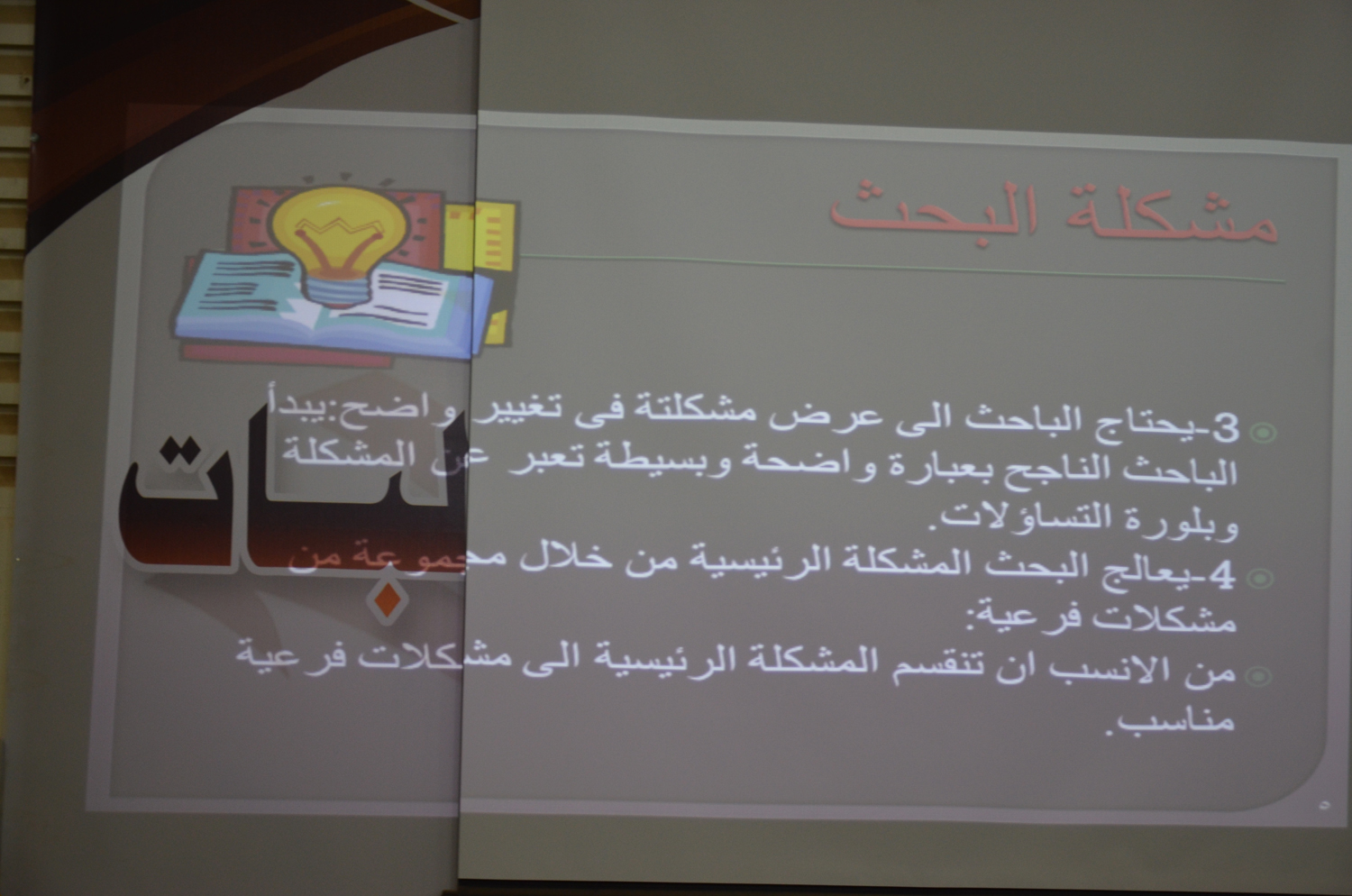 اختتمتها بكيفية كتابة تقرير شامل للبحث مع بعض التوصيات للمشتركات .
