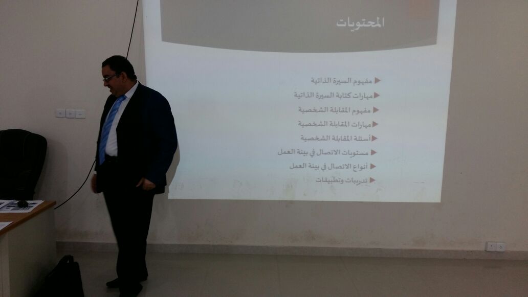 وتضمنت هذه الدورة كيفية ضوابط كتابة السيرة الذاتية وشروطها بالإضافة إلى طرق البحث عن عمل وتجاوز المقابلة الشخصية بالأساليب العلمية الحديثة