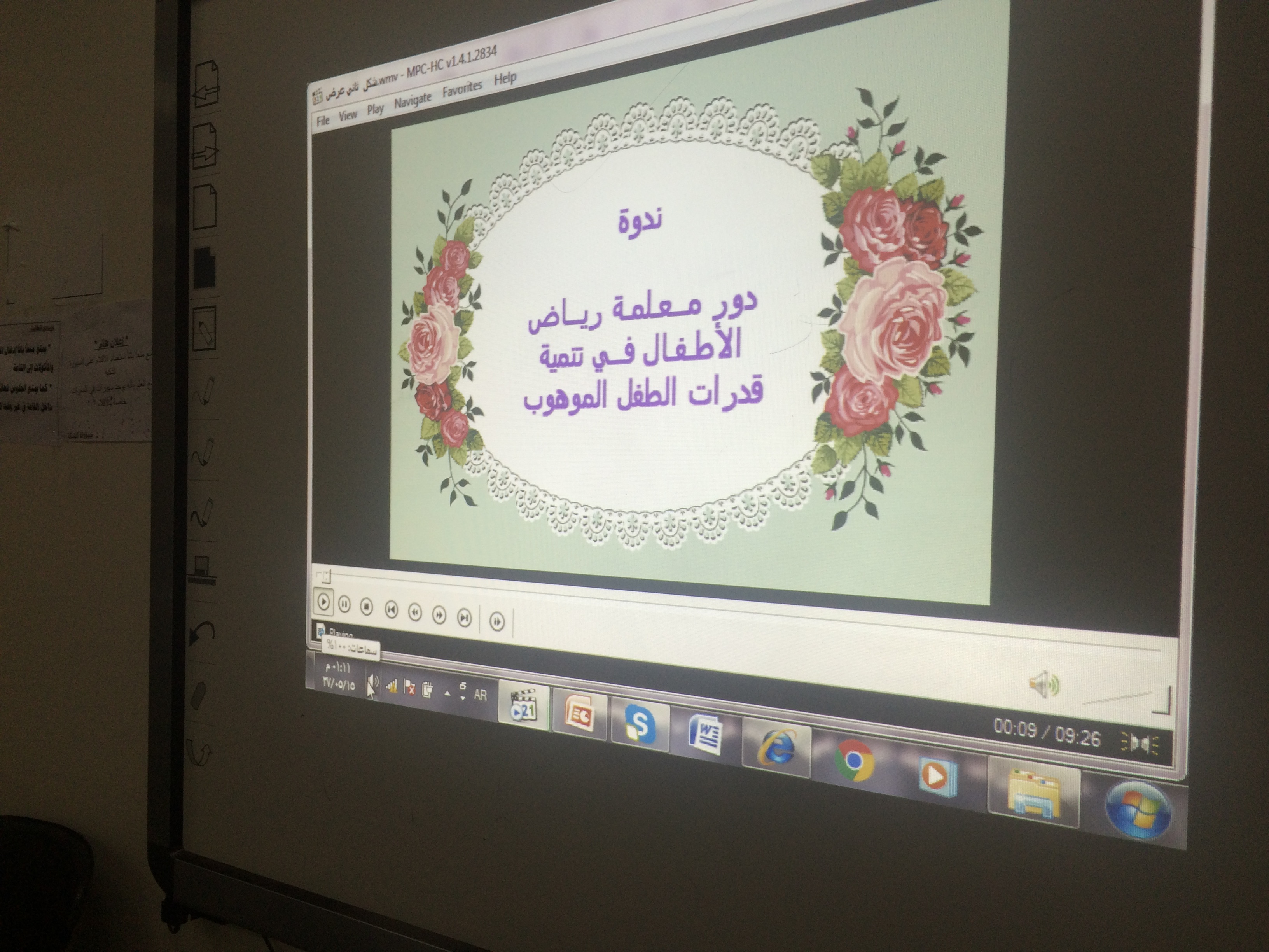 قامت طالبات المستوى السابع في قسم رياض الأطفال بتقديم ندوة بعنوان "دور ومعلمة رياض الأطفال في تنمية قدرات الطفل الموهوب "حيث تناولت مقدمة عن مفهوم الموهبة ، والفرق بينها وبين التفوق ومن ثم ناقش دور معلمة رياض الأطفال في اكتشاف الموهوبين ودورها في تنمية الموهبة من خلال اتباع الطرق واستراتيجيات تدريس مختلفة تتناسب مع خصائص واحتياجات الأطفال الموهوبين الندوة قدمت تحت إشراف أ. ندى الودعانى
