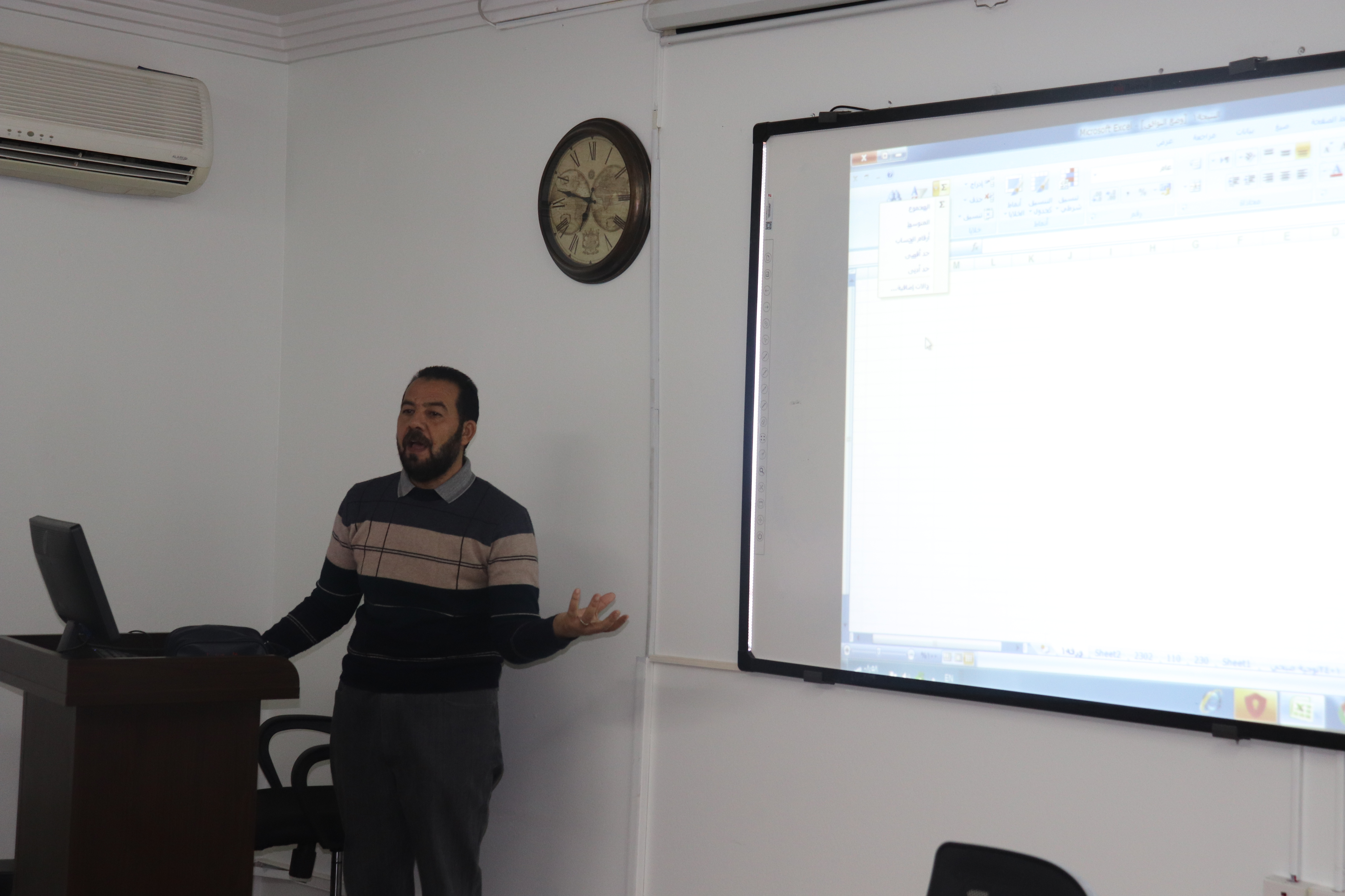 في إطار اهتمام الجامعة بتقنية المعلومات وتطوير منسوبيها من موظفين وإداريين نظمت وحدة النشاط الطلابي بالكلية دورة في " برنامج الجداول الإلكترونية (إكسل) " قدمها أ. ذيب أبو سالم المحاضر بقسم الحاسب الآلي بالكلية وذلك يوم الثلاثاء الموافق 29/3/1441هـ وقد تناولت الدورة اساسيات التعامل مع برنامج الجداول الالكترونية ، طريقة ادخال البيانات النصية والرقمية و تنسيقها، كما تناولت التعامل مع الدالات الحسابية والشرطية ، و طريقة الربط بين برنامج معالج النصوص وبرنامج الجداول الإلكترونية باستخدام دمج المراسلات.