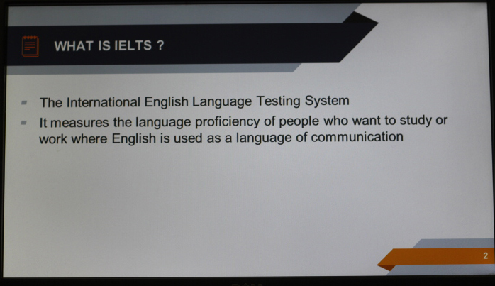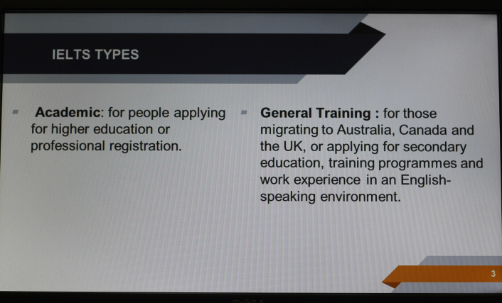 قامت وحدة العمل الطلابي ممثلة بالأندية الطلابية (نادي اللغة الإنجليزية) بكليات الأفلاج (قسم الطالبات) يوم الأثنين 1441/2/15هـ الساعة التاسعة صباحاً بتنظيم دورة بعنوان (an overview about the IELTS exam) قدمتها أ. شادن آل صقر، وتهدف الدورة إلى تعريف الطالبات المتوقع تخرجهن باختبار الآيلتس IELTS و هو النظام الدولي لقياس إتقان اللغة الإنجليزية، وبأنه صُمم لقياس القدرة اللغوية للأشخاص الذين يحتاجون إلى الدراسة أو العمل في الأماكن أو الجهات التي تعتمد اللغة الإنجليزية كلغة للتواصل بها ، ويتوافق اختبار الآيلتس مع أعلى المعايير الدولية لتقييم اللغة، وقد تضمنت الدورة شرح مفصل عن أقسام الاختبار و أنواعه و توضيح الدرجات المطلوبة للإلتحاق به واجتيازه.