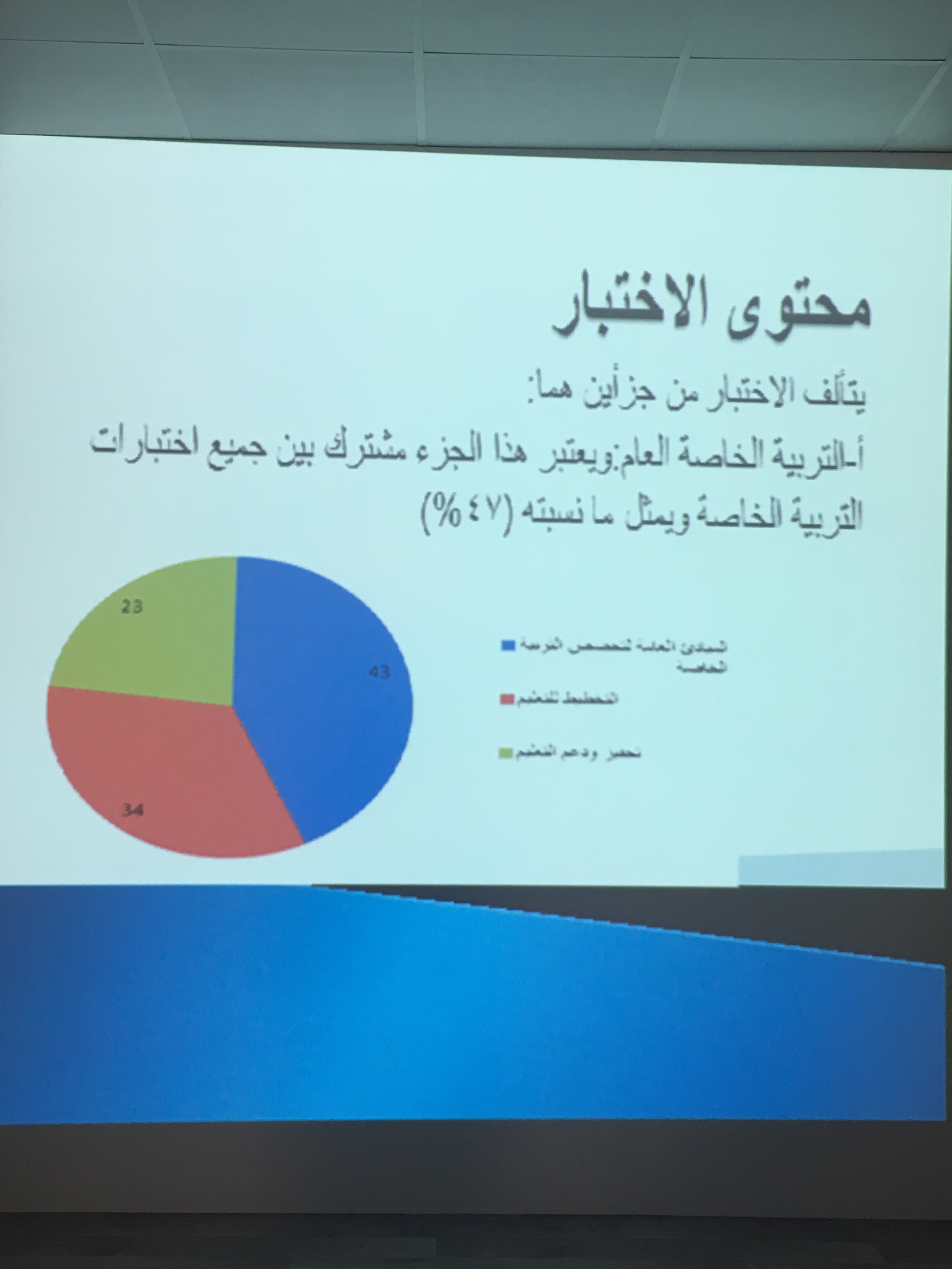 تحت إشراف مكتب العمل الطلابي بالتعاون مع قسم التربية الخاصة ووحدة الخريجات بكلية التربية بالخرج قدمت كل من (د.أماني المصري ود.فايزة احمد) من قسم التربية الخاصة ووحدة الخريجات بكلية التربية بالخرج دورة تدريبية لطالبات قسم التربية الخاصة بعنوان(اختبارات الكفايات لمعلمة التربية الخاصة )وبالتحديد الخريجات وطالبات المستوى السابع وبالتعاون مع طالبتين تخرجوا سابقا من مركز روح الأرادة وبلغ عدد الحضور ( 51 ) طالبة, والهدف من تحقيق الدورة هو اكساب الطالبات معلومات أساسية حول اختبار الكفايات لمعلمة التربية الخاصة, وفي نهاية الدورة يتوقع من المشاركات أن تكون قادرة على مساعدة الطالبات على التهيؤ والاستعداد للاختبار وذلك بعرض معلومات حول أبرز محاور الاختبار وتقديم امثلة على اسئلة الاختبار وكيفية ربطها بالمعايير واسئلة اخرى للتمرين,ومساعدة الطالبات على التعرف على طريقة أداء الاختبار وطبيعة الأسئلة.