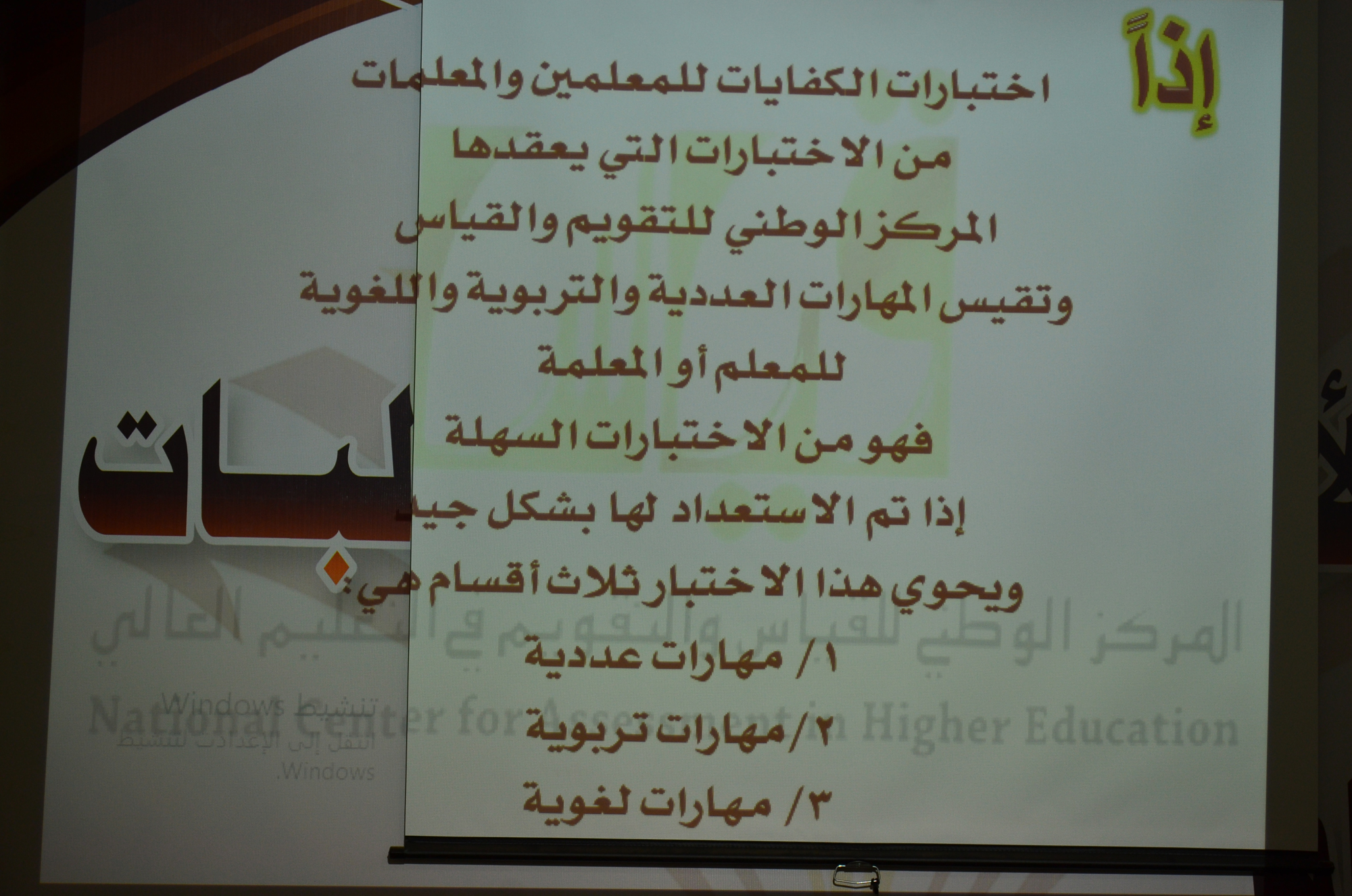 نظمت وحدة الخريجات بكلية العلوم والدراسات الإنسانية بالأفلاج يوم الأحد 1440/2/19 هـ الساعة الثانية عشرة ظهراً في مسرح الكلية بالتعاون مع إدارة التعليم في المنطقة دورة تدريبية بعنوان " اختبارات الكفايات و القياس " قدمتها الأستاذة فاطمة الحامد و الأستاذة شيخة الحقلان , استهلت الدورة بالهدف من إقامة اختبارات القدرات و القياس و الفائدة المترتبة عليها , بعدها انتقلت إلى التعليمات والارشادات التي يجب على الطالبة الاطلاع عليها , ثم تطرقن الى كيفية الاختبار وطريقته وإلى كم قسم ينقسم و ماهية كل قسم و نوع الأداء فيه .