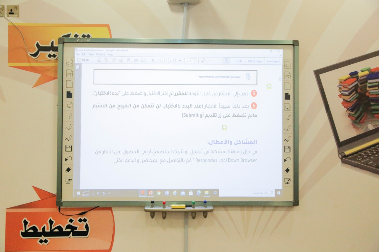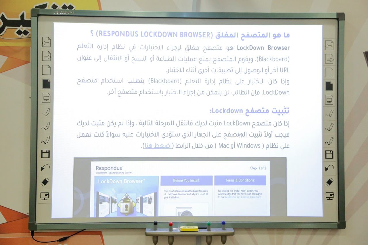 "استخدام المتصفح الآمن Respondus LockDown Browser للطلاب" وذلك استعدادا للاختبارات النهائية والتي ستقام عن بعد في ظل جائحة كورونا .