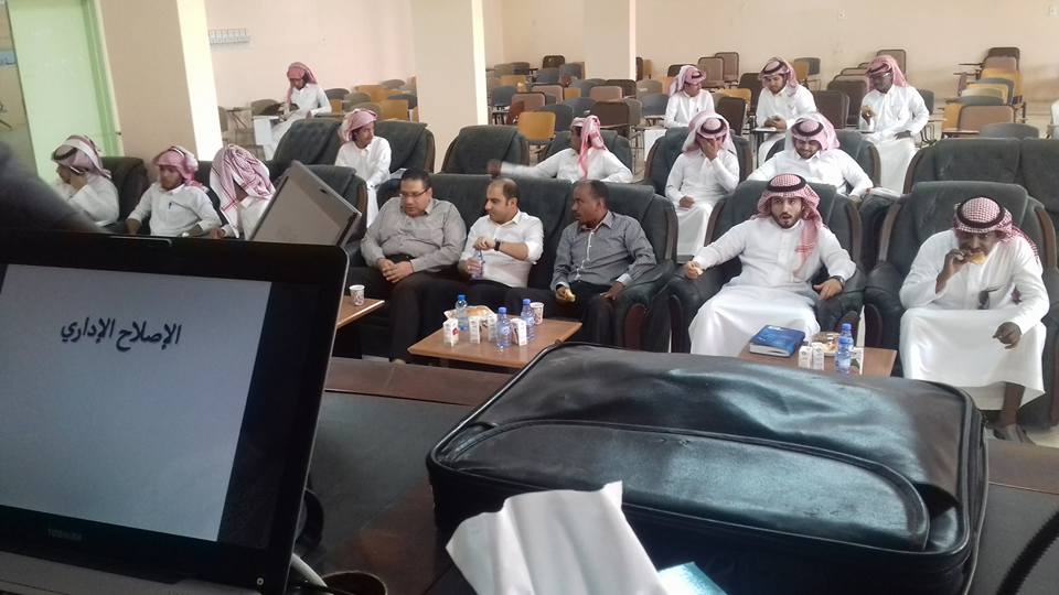 نظمت عمادة شؤون الطلاب بالفروع ممثلة في وحدة الأنشطة الثقافية والاجتماعية بالتعاون مع كلية العلوم والدراسات الإنسانية بالسليل دورة تدريبية بعنوان " الإصلاح الإداري " ضمن البرنامج التدريبي "مهارتي سر نجاحي " وذلك يوم الثلاثاء 14/7/1438هـ بمسرح الكلية بإشراف الدكتور /عبدالفتاح أحمد خلف مشرف النشاط الطلابي والمنسق الإعلامي بالكلية .
