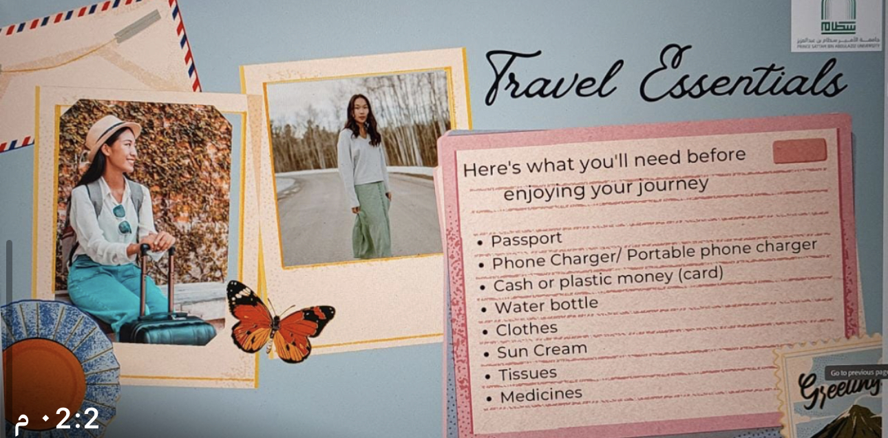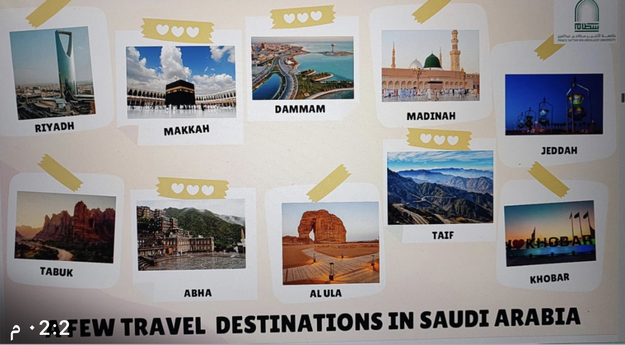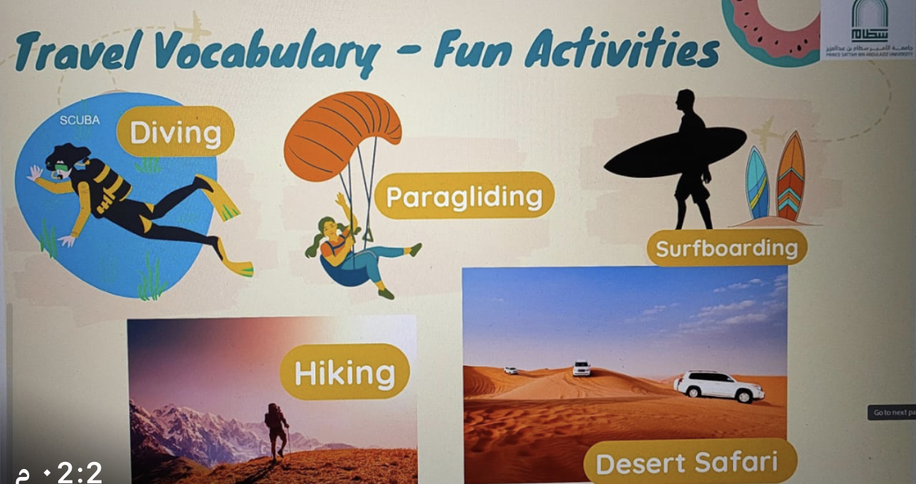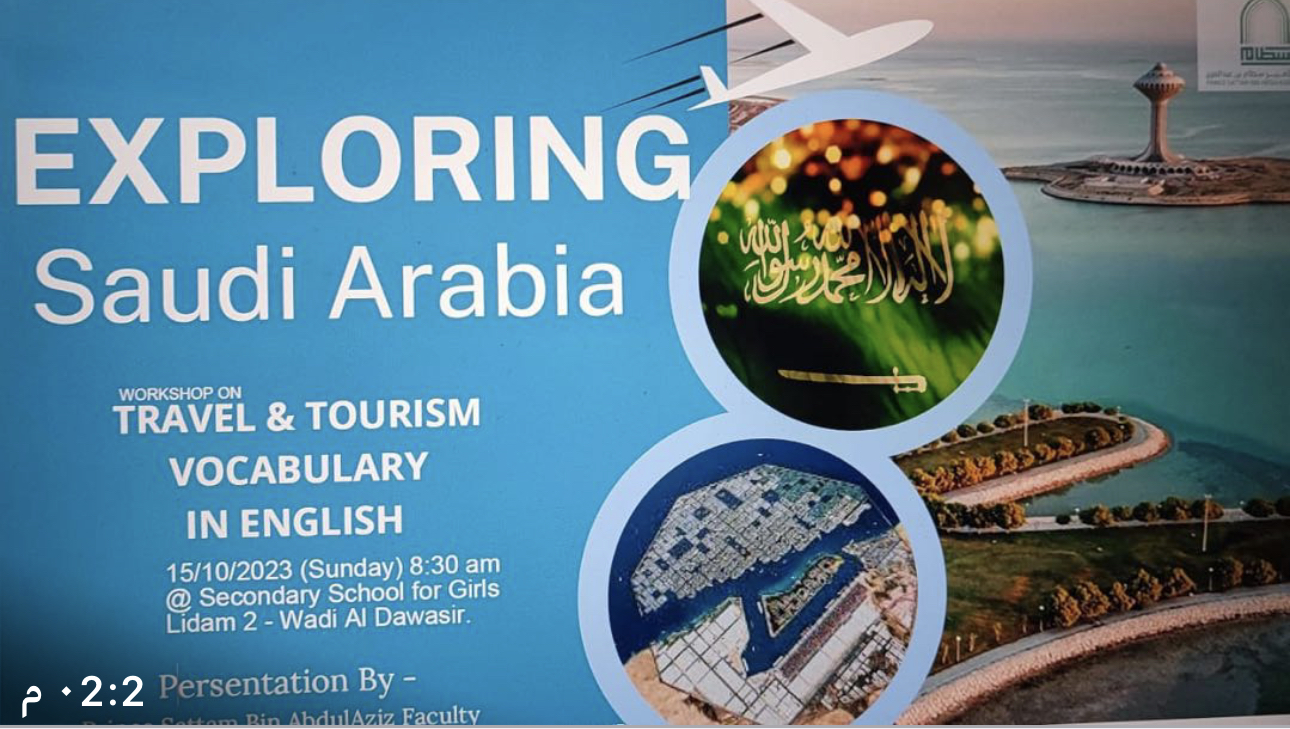 تفاعلن الطالبات طوال البرنامج وشاركن بنشاط في اختبار مفاجئ حول مفردات السفر والسياحة كما زودت الدورة المشاركين بمهارات اللغة الإنجليزية القيمة حول السياحة في المملكة العربية السعودية.