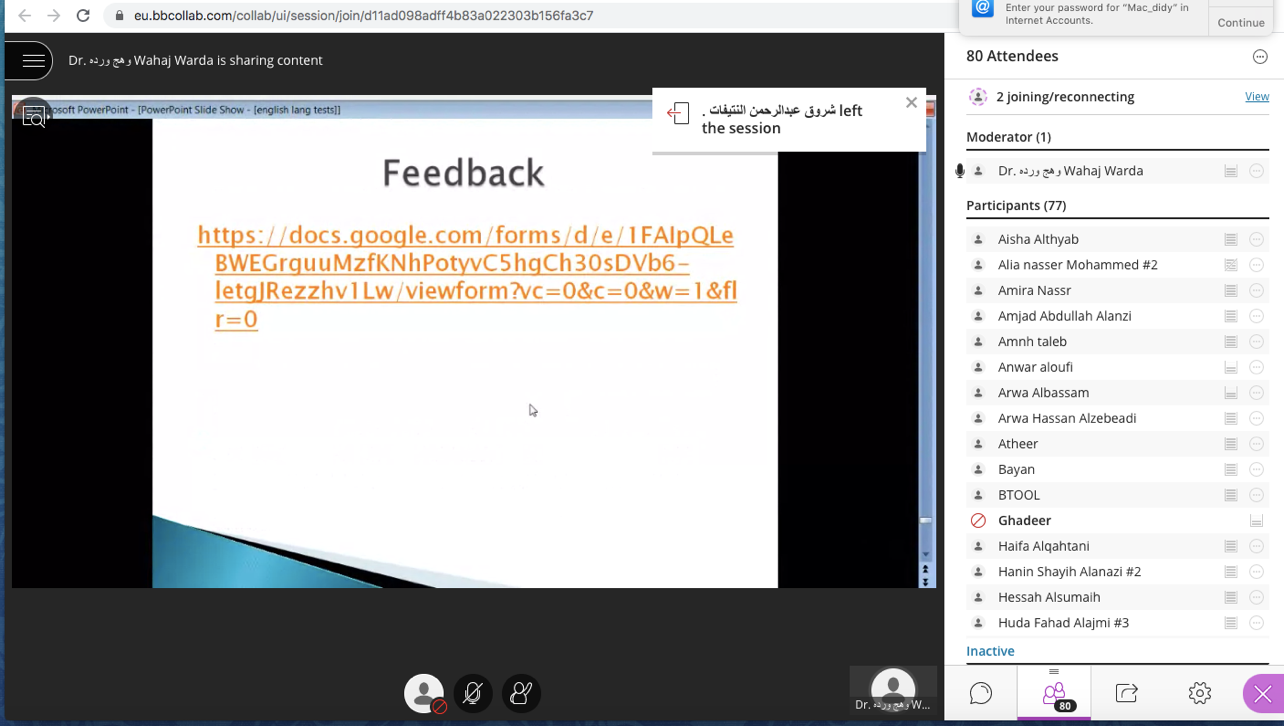 وأخيرًا تم إنهاء هذا اللقاء بالإجابة على أسئلة واستفسارات الطالبات اللي رحبت بها المدربة، كما شكرت الطالبات المدربة د. وهج وردة على أدائها الرائع لتقديم الدورة.