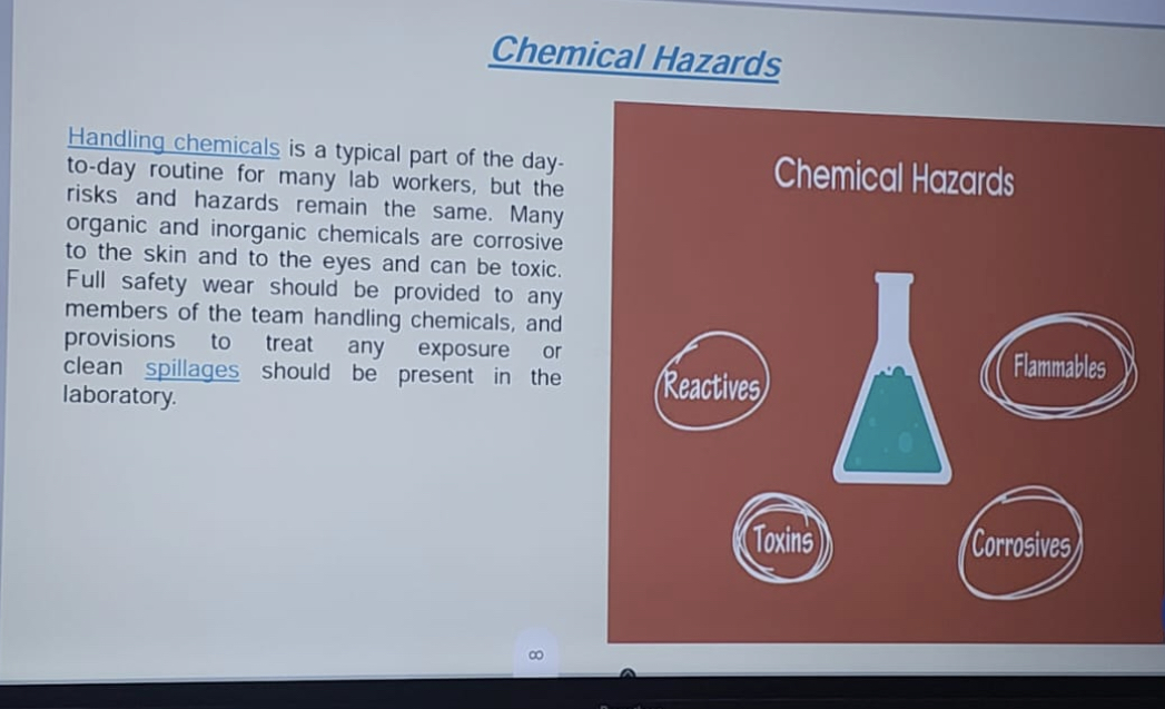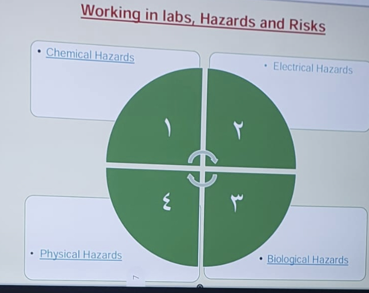 وتضمنت الدورة التدريبية تعريف الطالبات بجودة المختبرات والطرق المختلفة لتحقيقها وخاصة الأمن و السلامة، وكيفية التخلص من النفايات الكيميائية بطريقة آمنة و فعالة، وقد حضر الدورة مجموعة من طالبات قسم الكيمياء .
