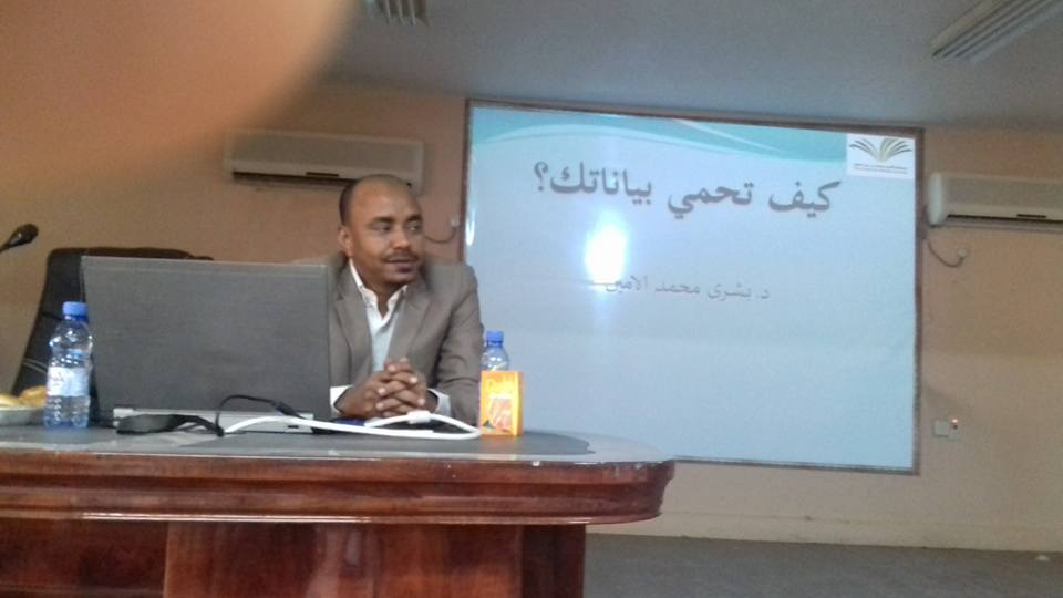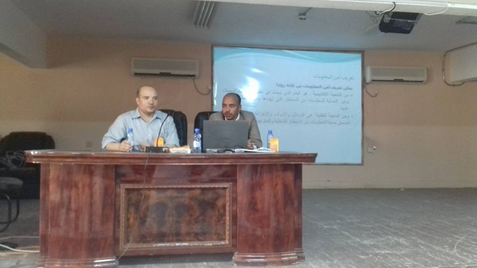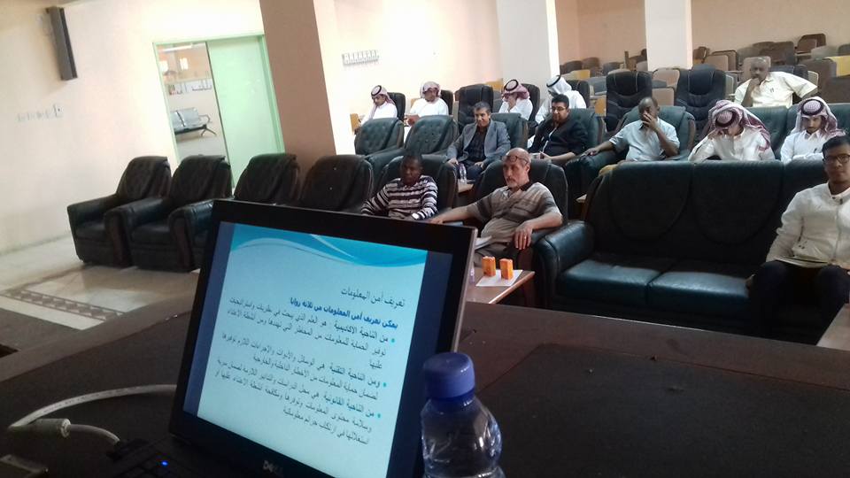 قدم الدورة الدكتور بشري محمد الأمين مشرف قسم الحاسب والمعلومات بالكلية حيث تناولت الدورة تعريف أمن المعلومات وحاجة الدول والافراد لوجود إجراءات أمنية قابلة للتطبيق تغطي المخاطر التي يمكن أن تظهر عند التعامل مع الأطراف الأخرى. ومع تطور التقنية المعلوماتية وازدهارها توفرت فرصاً للإجرام الإلكتروني.